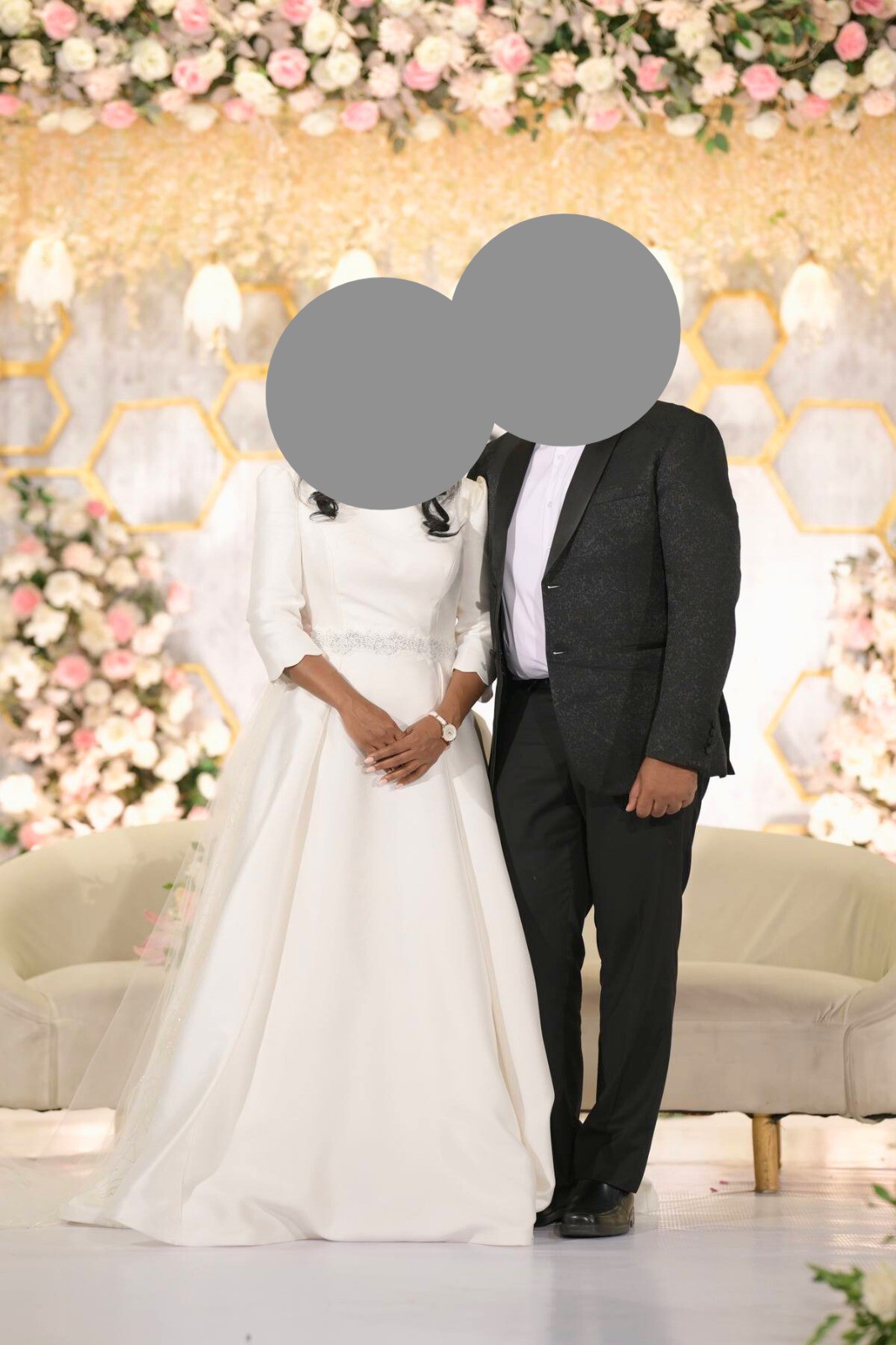Sonna RC Long Sleaved Beaded Belt Aline gown (original price 3500$) with sienna fabric purchased in Sept 2025 from Designer Loft, NYC. Beaded floral veil (Daffodil E-12-7961)(original price 1000$)from Tony Federici and Athena beaded pearl garland head peace(250$) also available for purchase. Gown and veil professionally drycleaned in Boston.