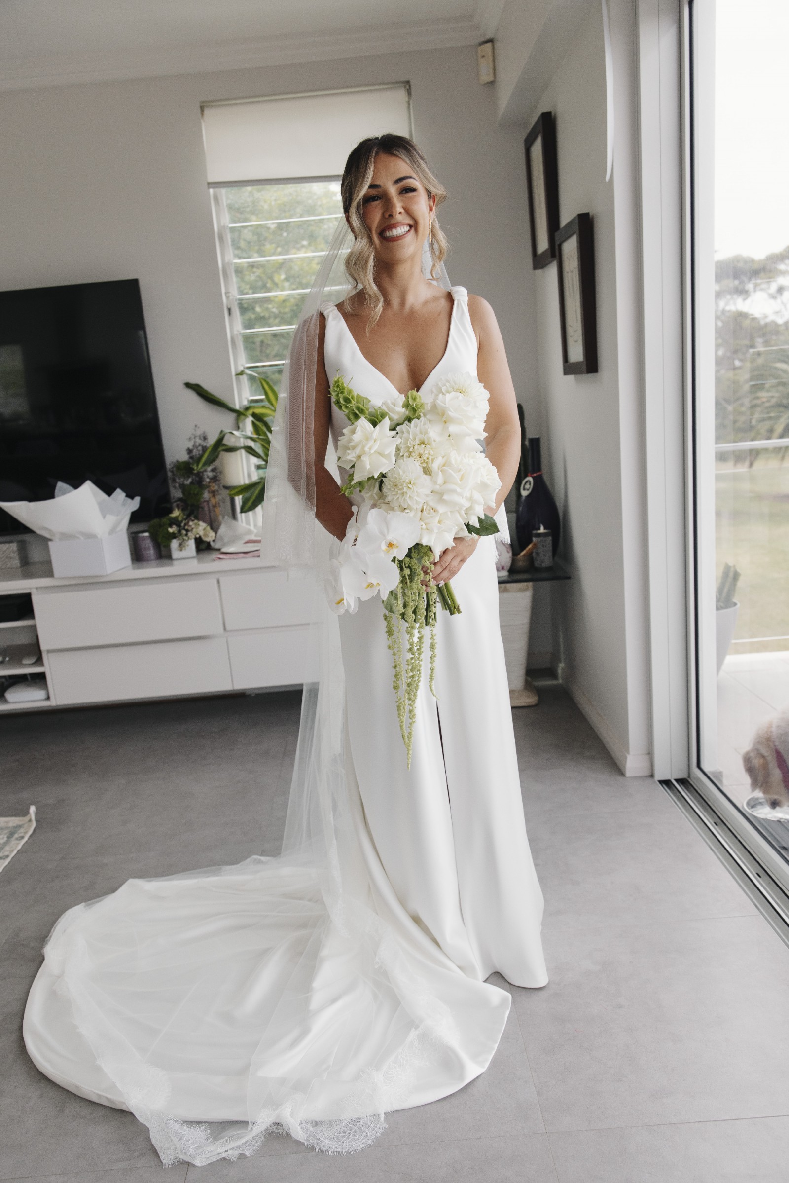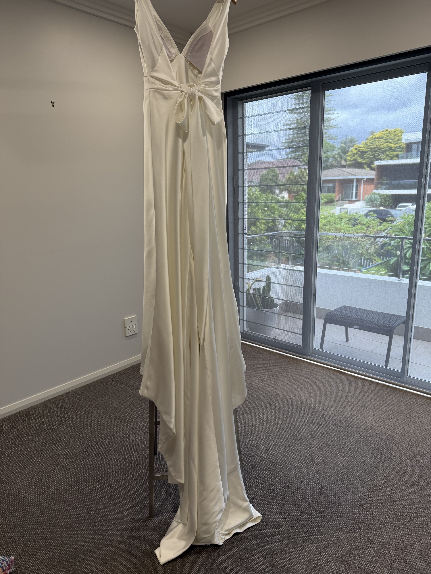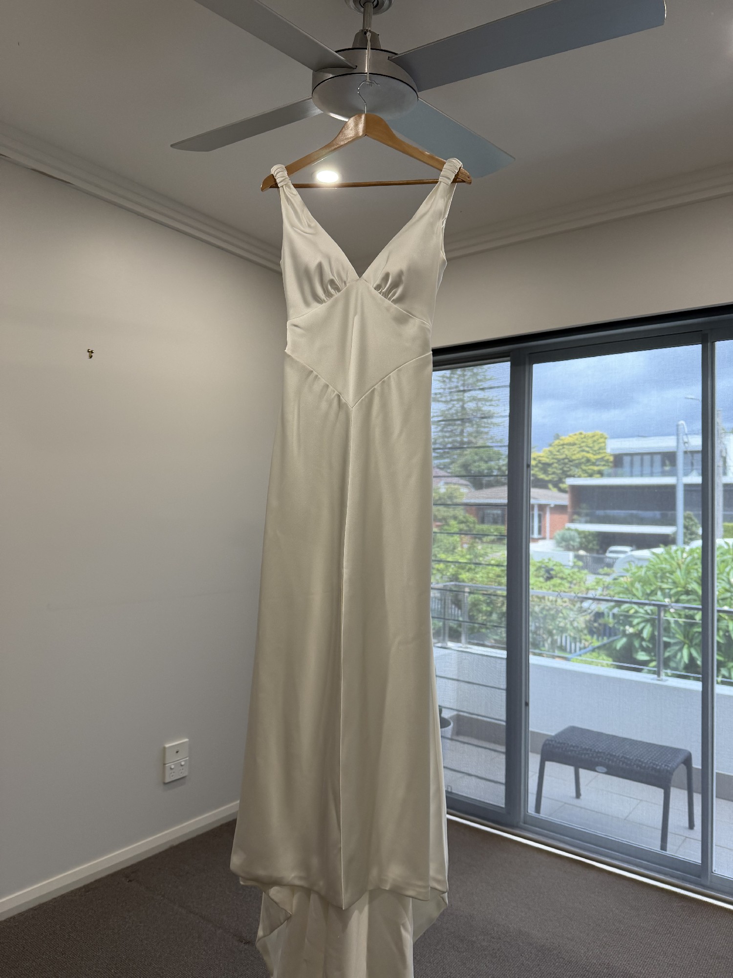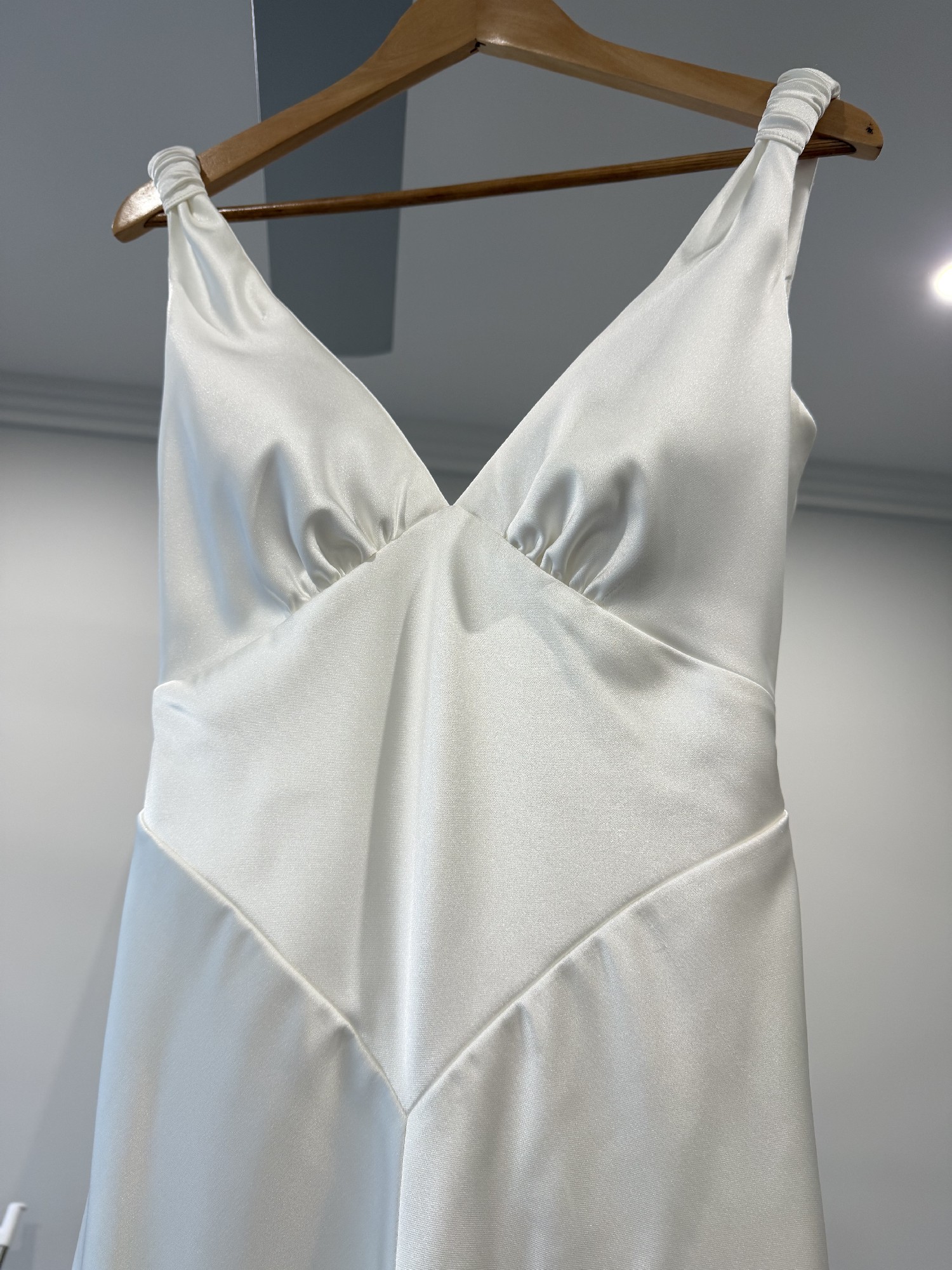 This gown is crafted from Opulence synthetic satin and was one of the most comfortable dresses I tried on. Unlike silk, it didn’t cling to my body, and I felt completely comfortable wearing it all day.