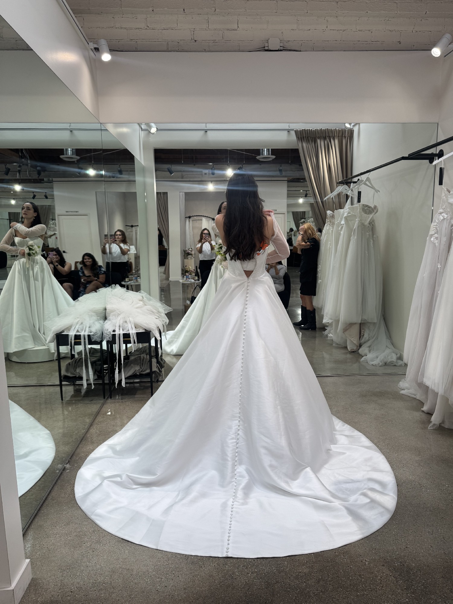 Autumn dress by Mia Solano! Completely new. No alterations. Has not been removed from the original garment bag. This dress is stunning. I felt incredible in it & my friends really wanted this to be the one but ultimately, it didn’t fit the vibe I was going for with my venue.