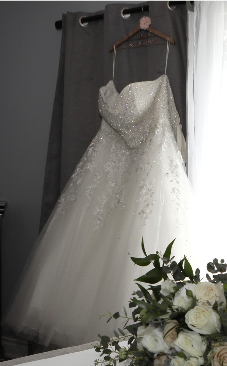 Worn for a couple hours, perfect condition and discounted price for this gown. Paid $3500