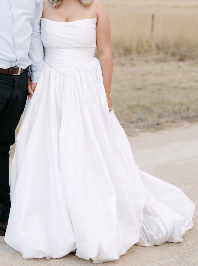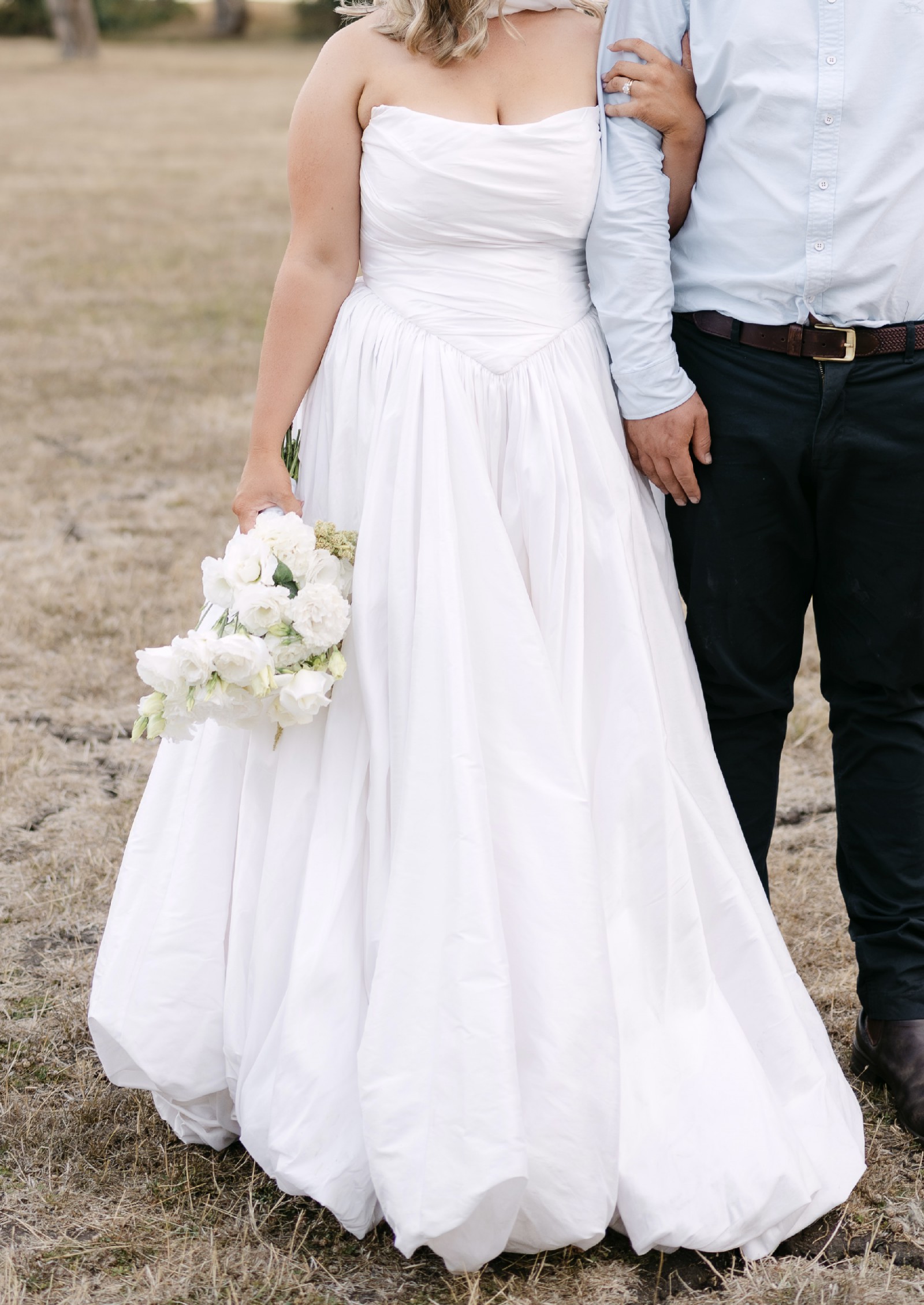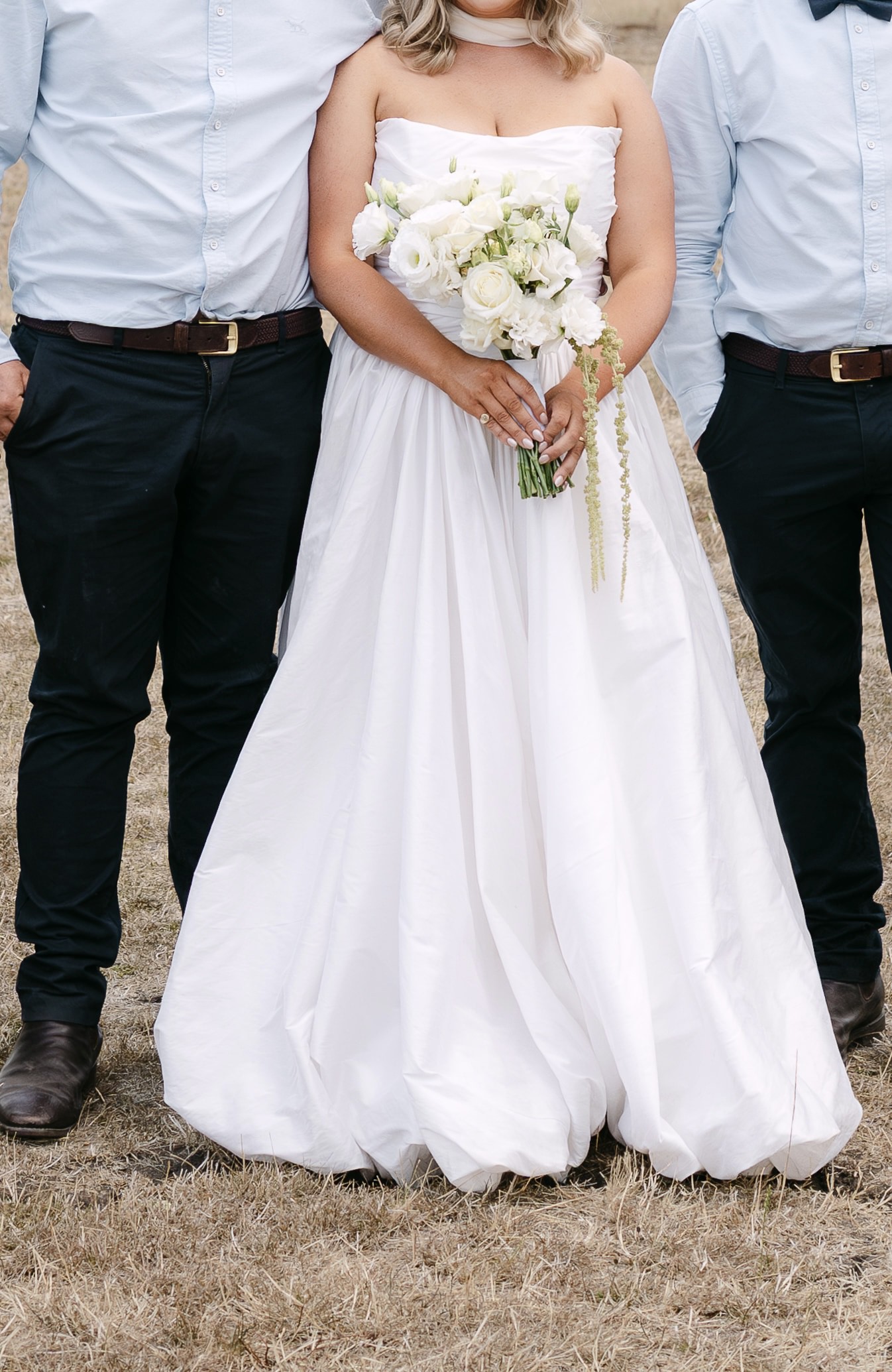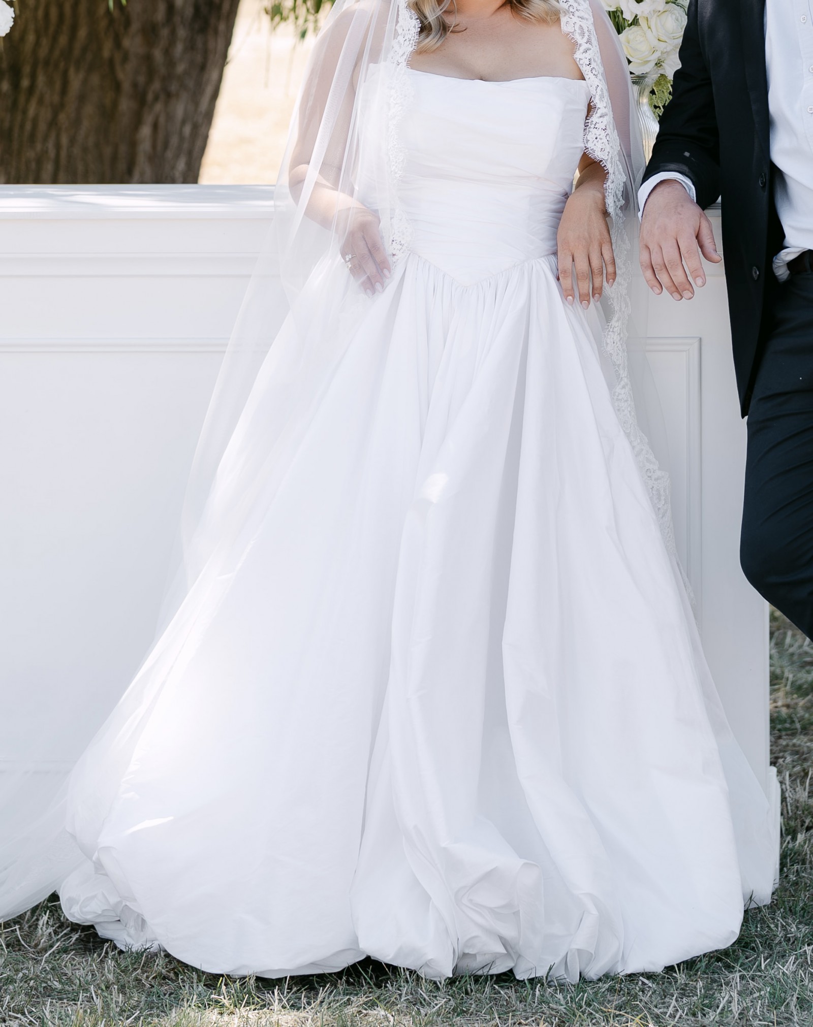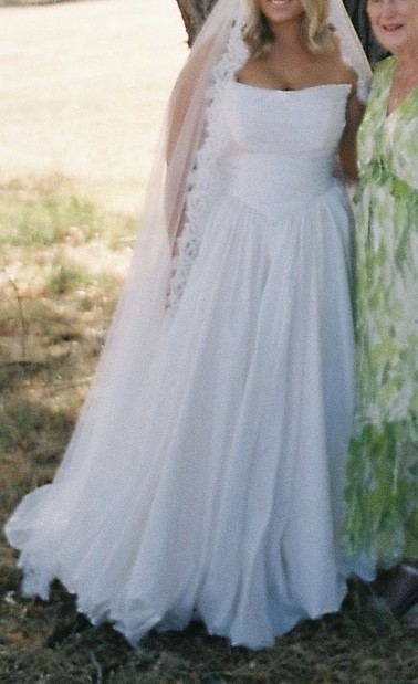Custom Couture Love Madness. Bubble hem with a train. Corset included with a buttoned zip over the back.
