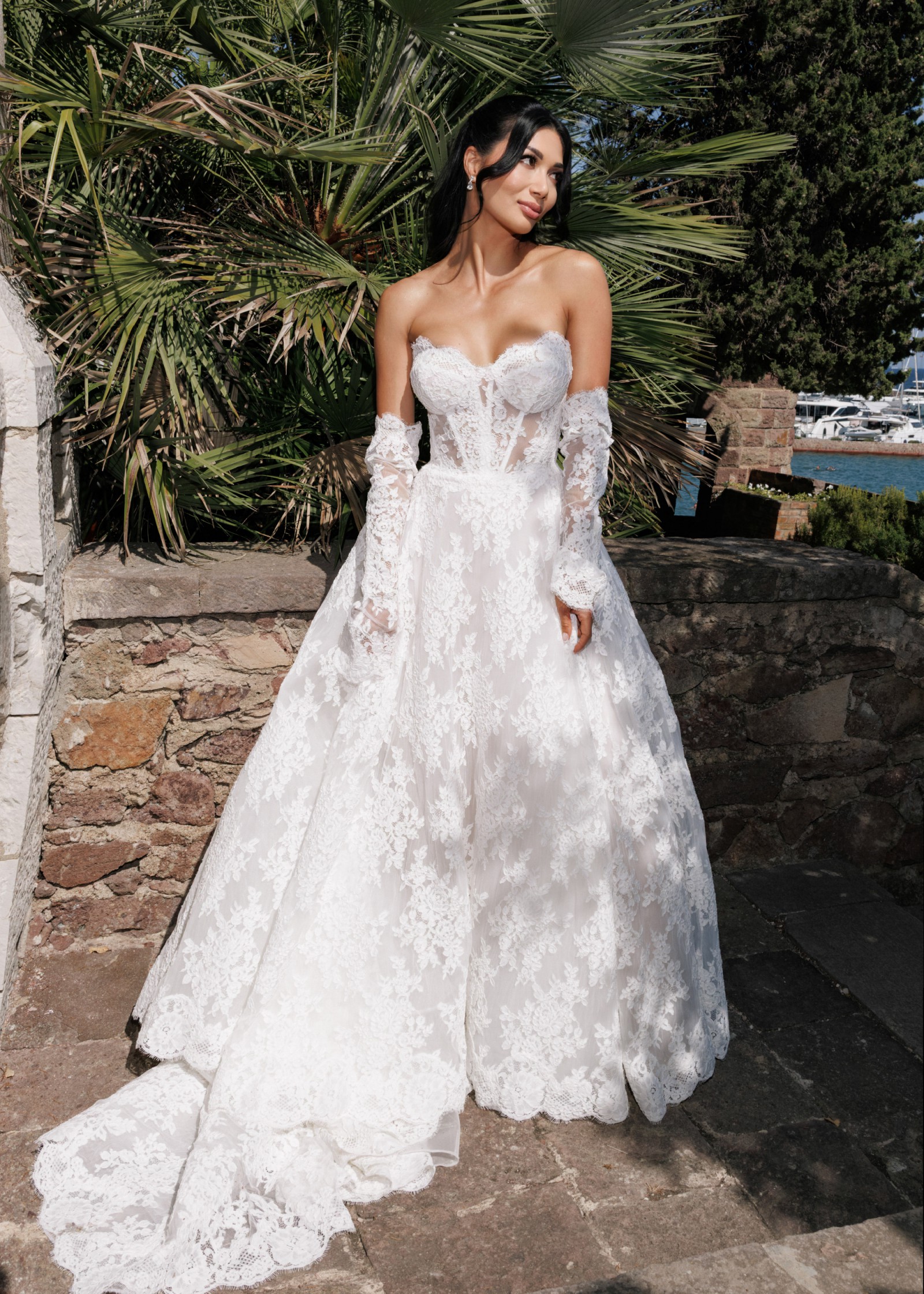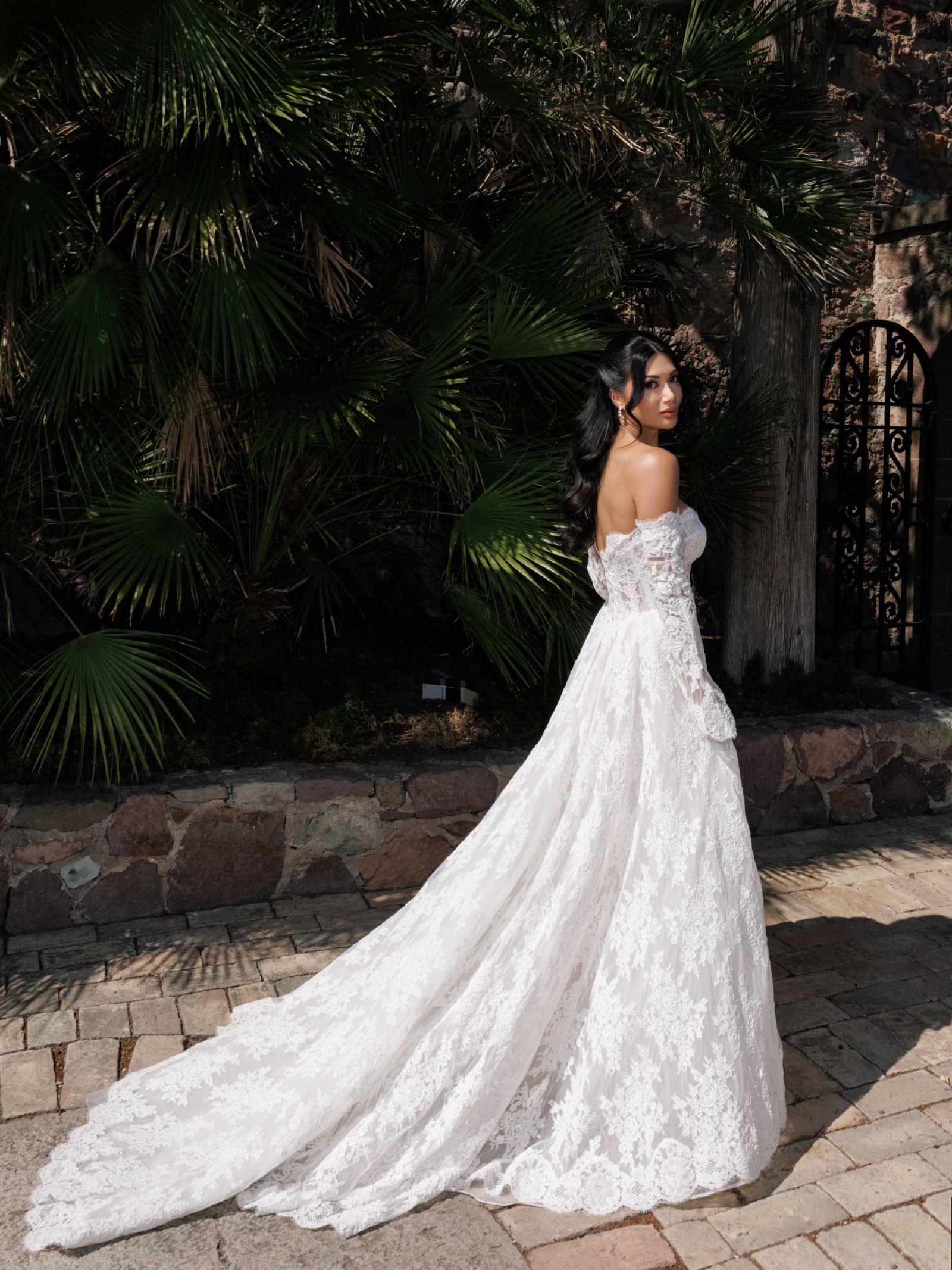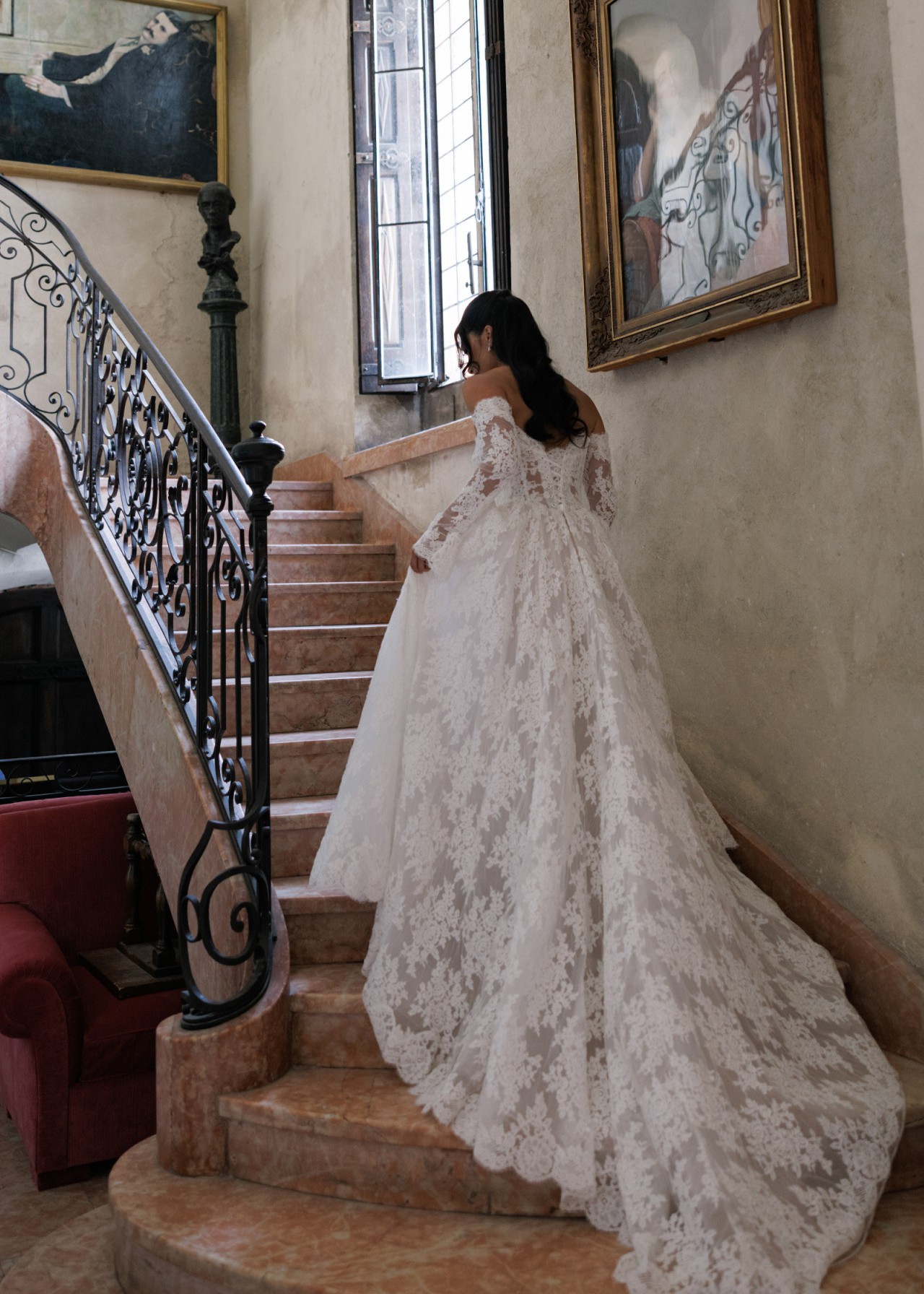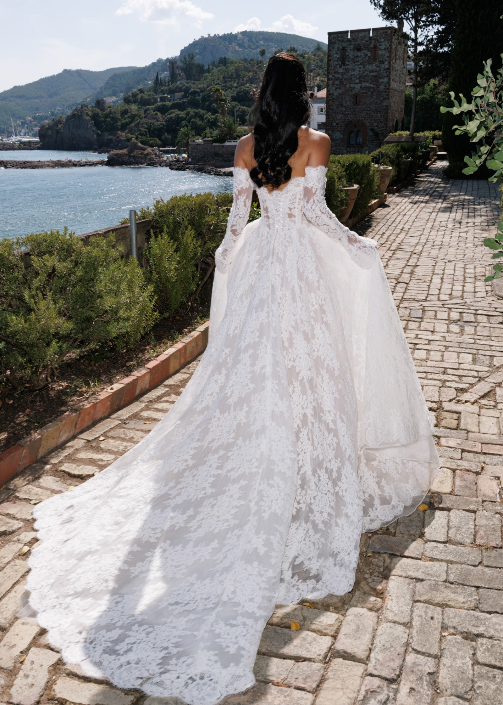 One of the dress's standout features is the detachable sleeves, which allowed me to transition from a romantic bridal look to a more relaxed vibe seamlessly throughout the day. I adored the corset back, which not only provided a perfect fit but also added a touch of allure.