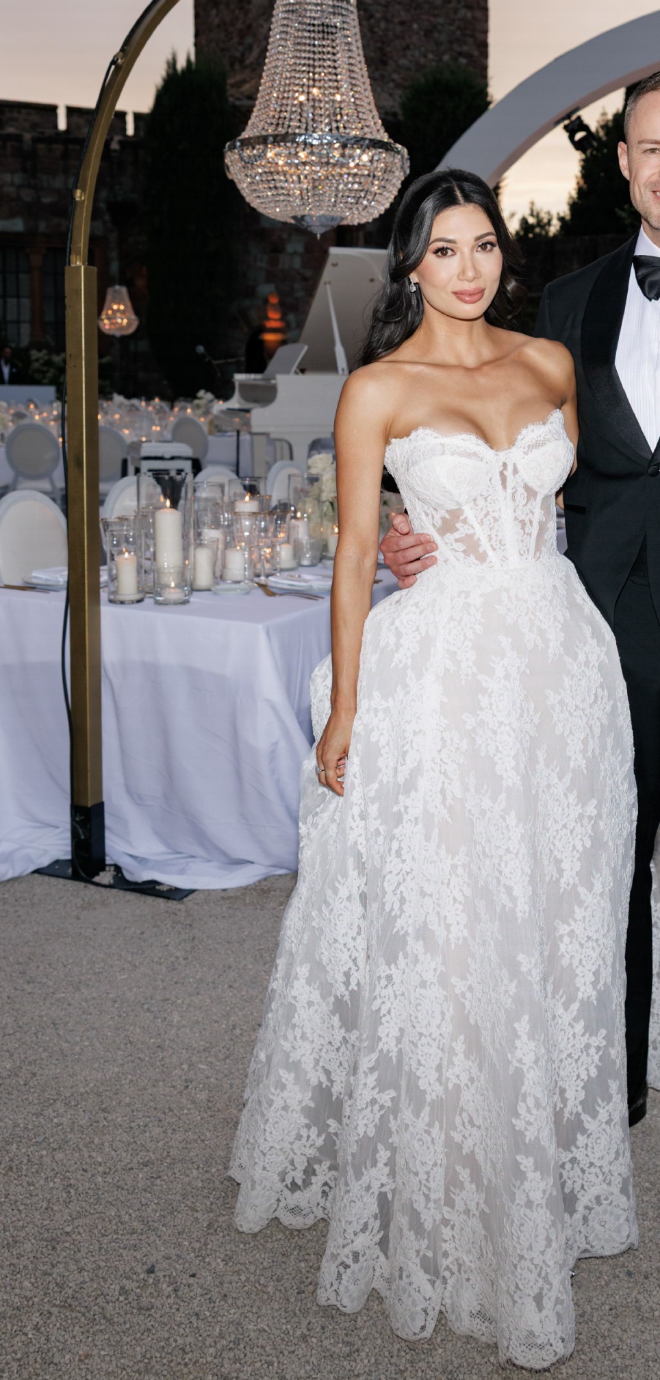 This Love by Pnina Tornai dress has been a dream come true on my special day. The moment I slipped into this stunning A-line gown, I felt like a fairy-tale princess. The ivory lace design is intricately detailed and adds a timeless elegance, while the sweetheart neckline.