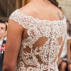 This exquisite Essense of Australia wedding dress is a true embodiment of elegance and romance, designed to make any bride feel like she’s floating on a cloud of dreams. The fit and flare silhouette accentuates curves beautifully, while the off-the-shoulder neckline adds a touch of sophistication and allure, allowing for graceful movement throughout the day.