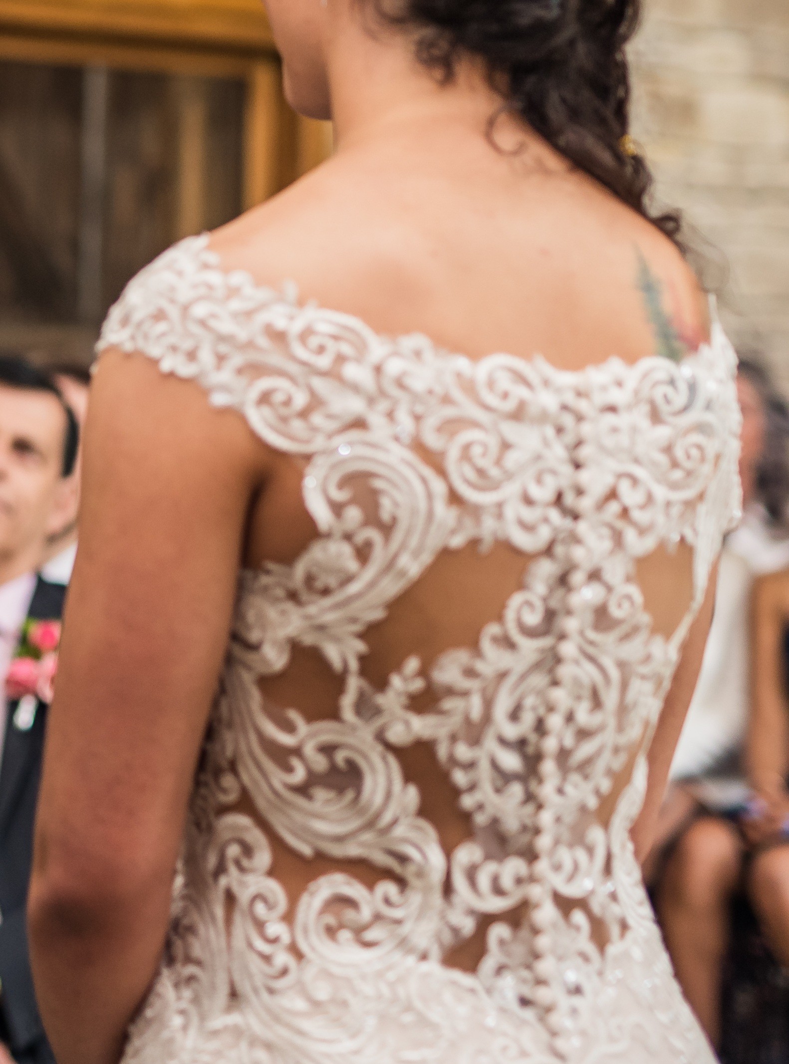 The floor-length gown features intricate embroidery that tells its own story of craftsmanship and artistry. It sparkles subtly in the light, making every step radiate with a soft glow. With a high back, it offers both modesty and a seamless look, perfect for walking down the aisle or dancing the night away.