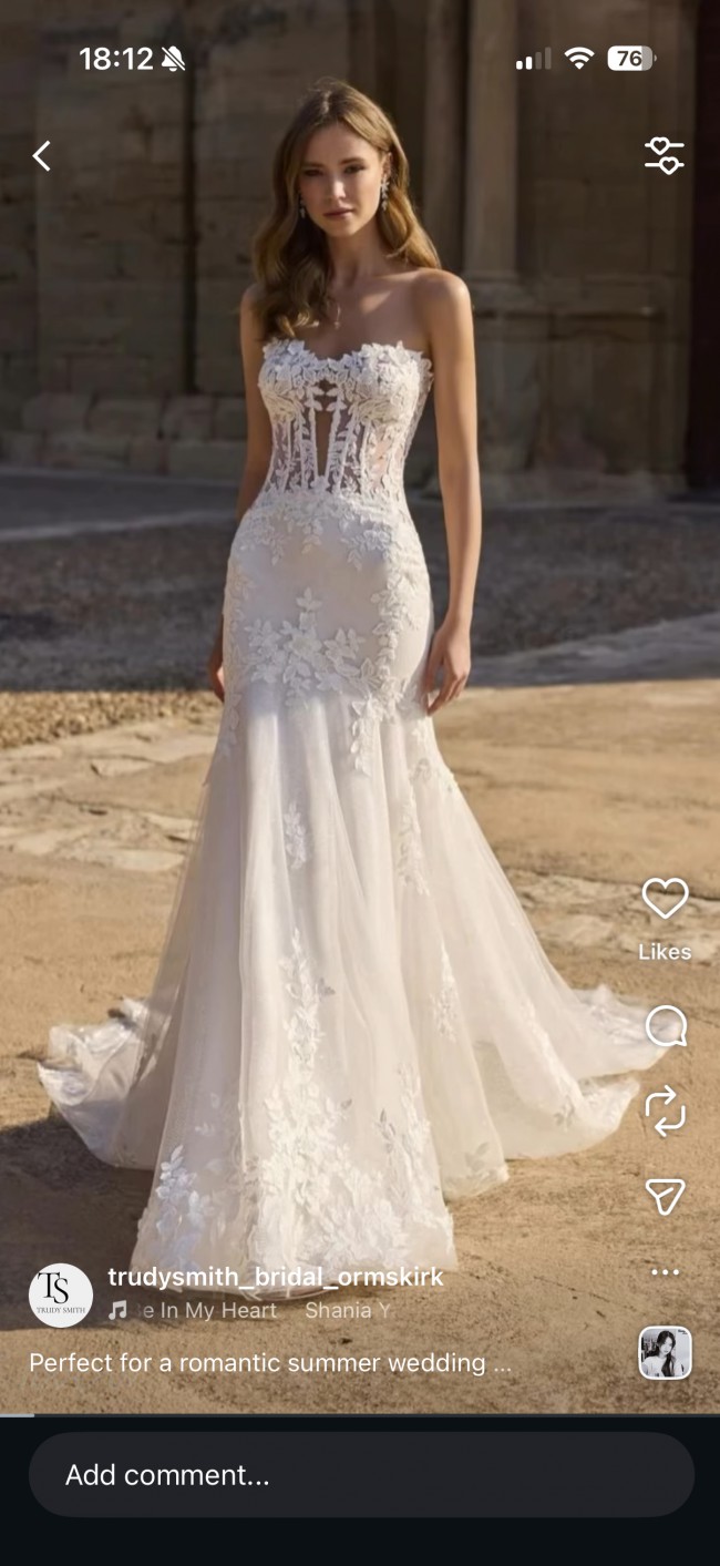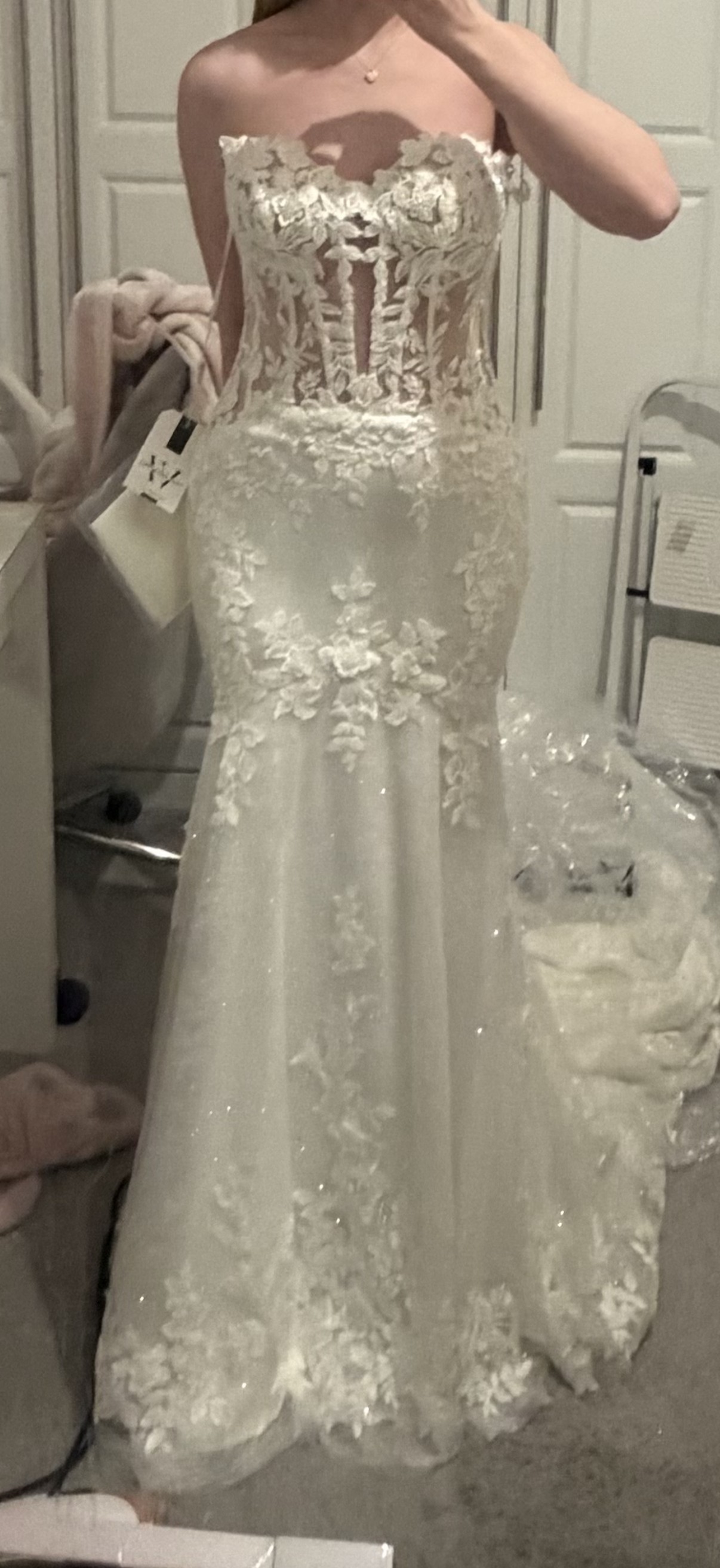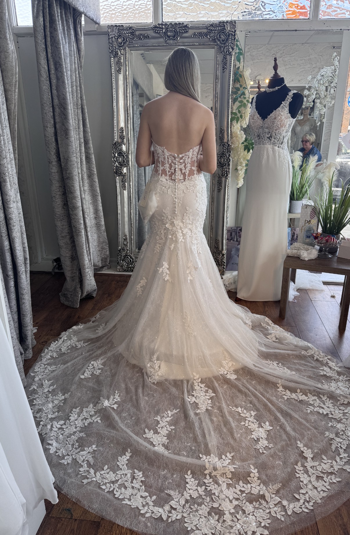 Bought this and then changed my mind a couple of months later and went with something else! Was made to order so could not return Brand new has not been altered Also selling an over skirt which can be seen on the forth picture over the dress to create a 2 in 1 £200 or 1550 for all together