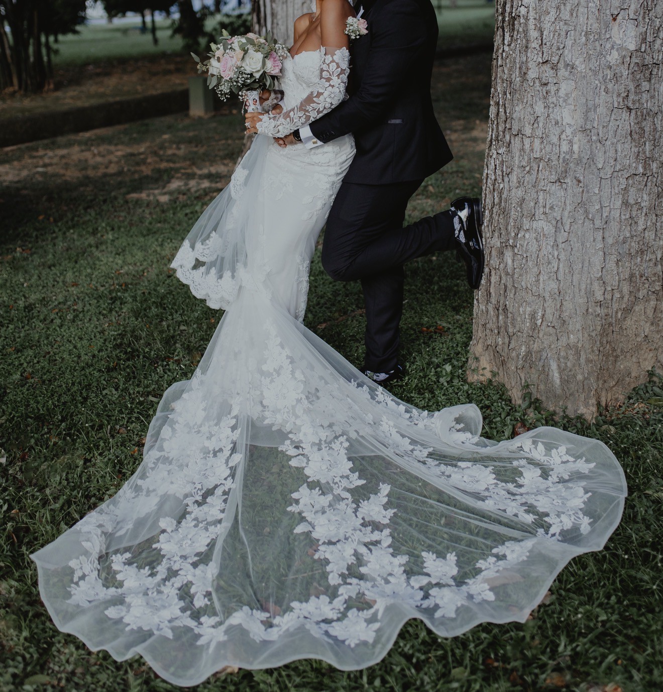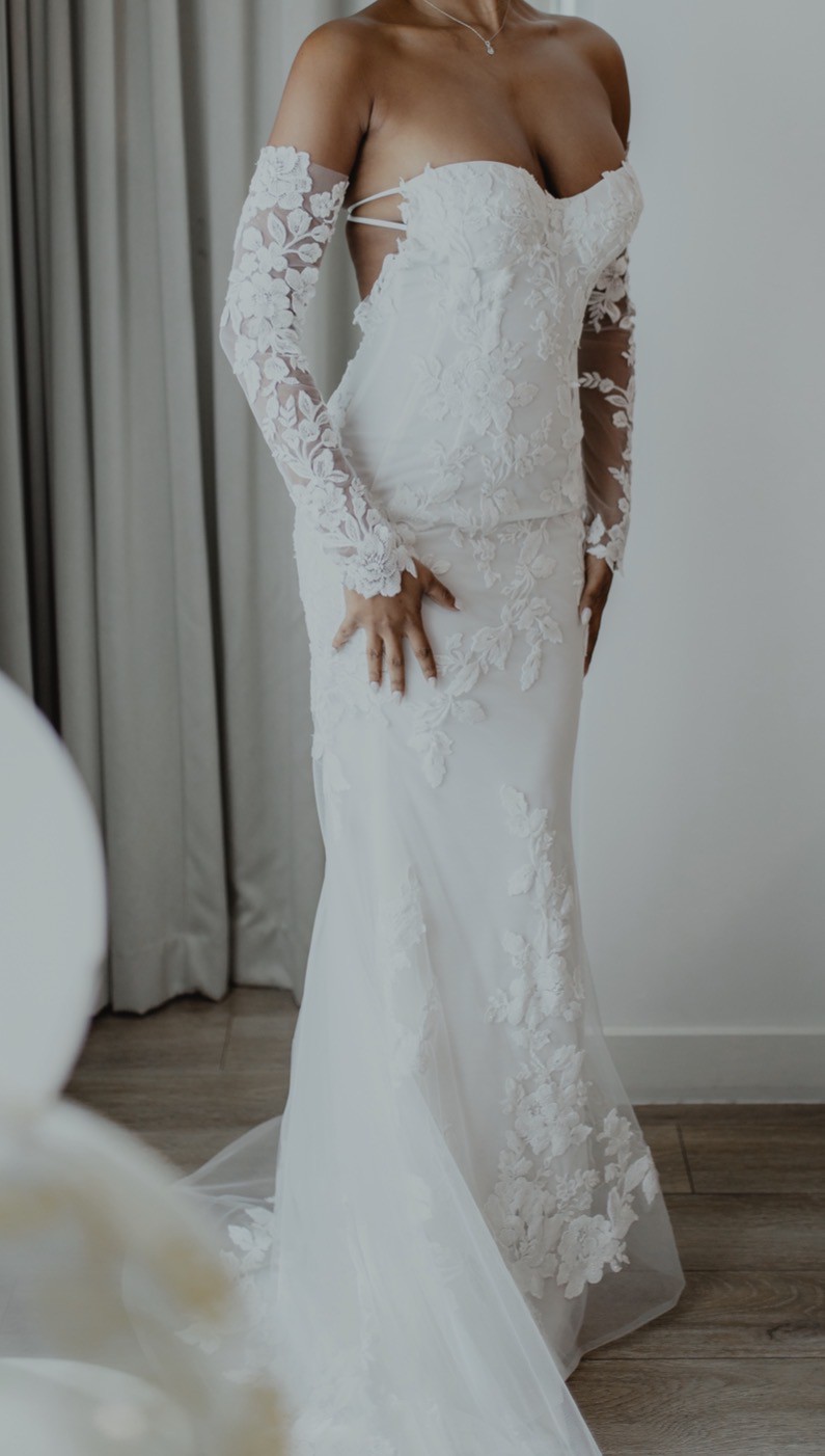 The dress also comes with detachable sleeves that I had custom-made separately on Etsy, offering versatility and two distinct looks. The gown has a white underlay.