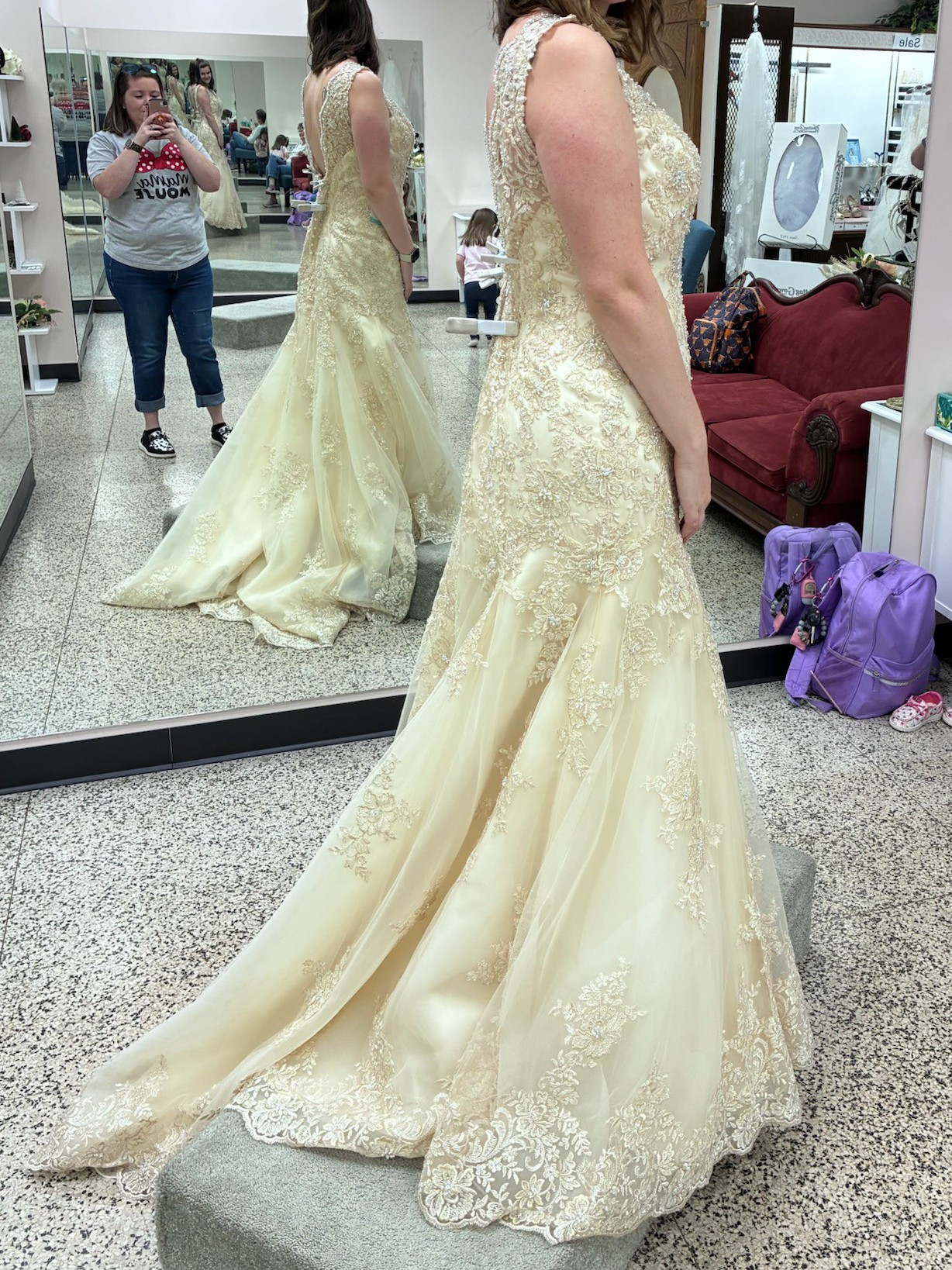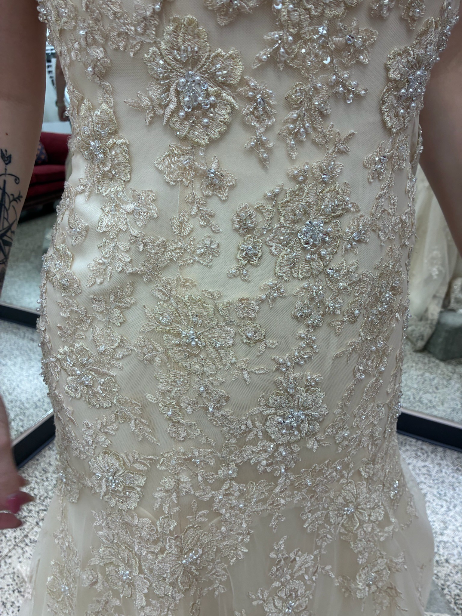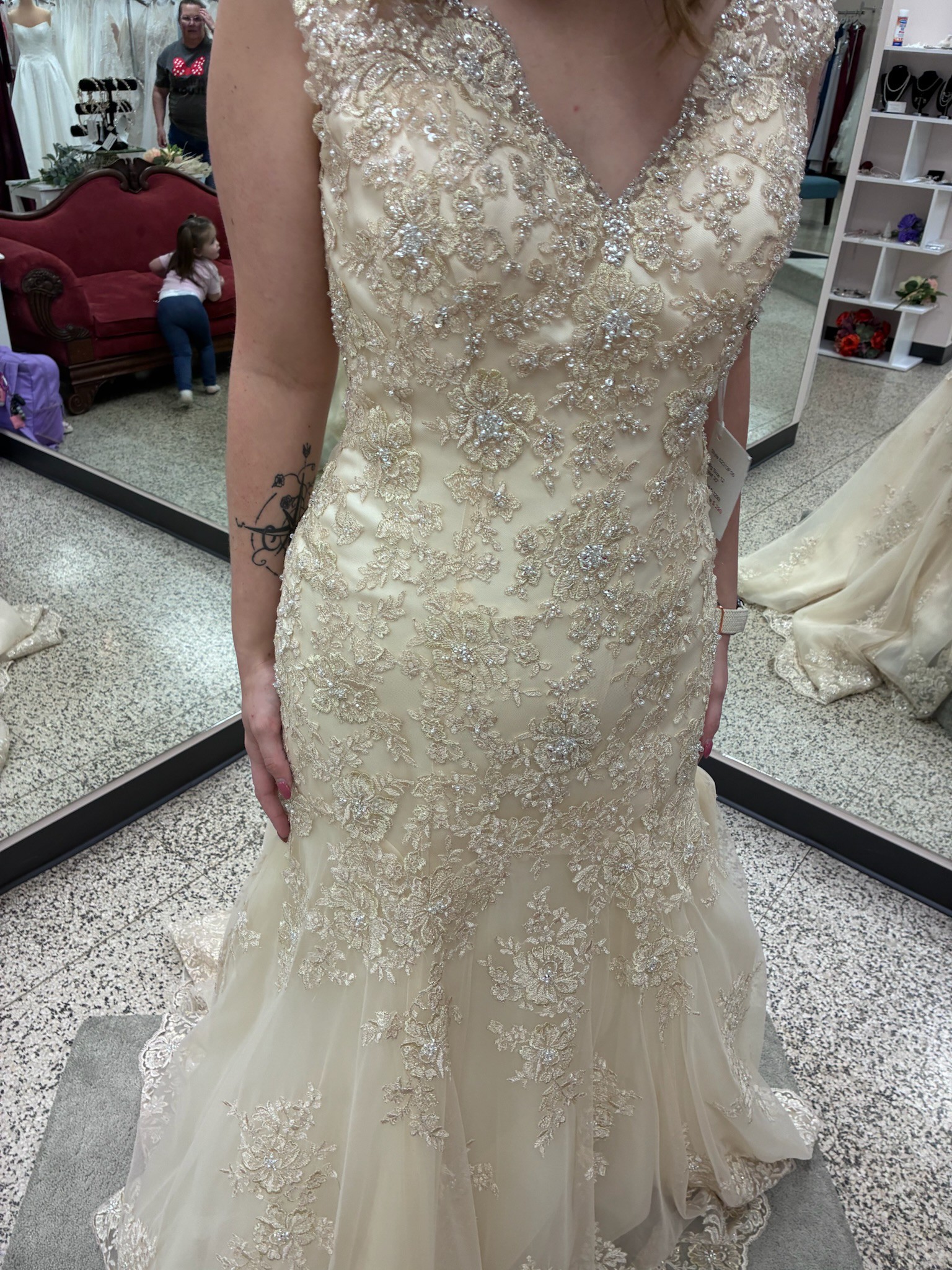 Brand new never altered! Bought it for my wedding and chose to go with a different style