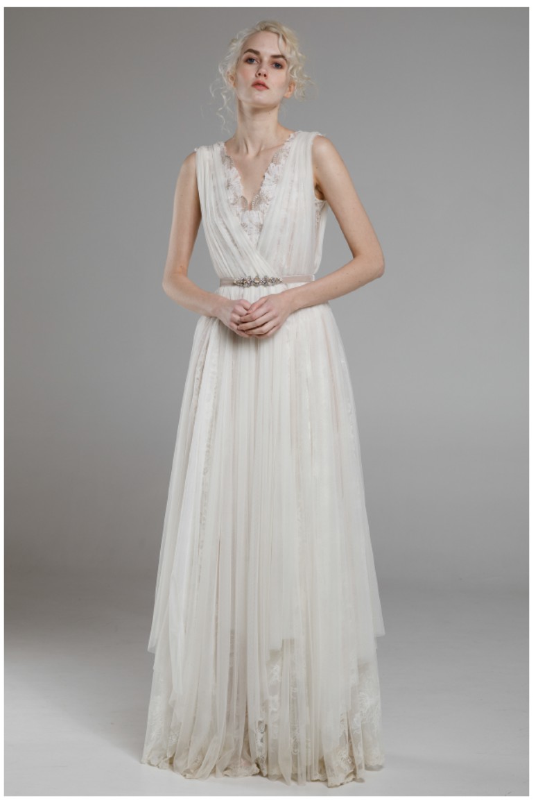 This lace wedding dress is absolutely ethereal. The loose fit suits almost any body type.