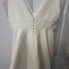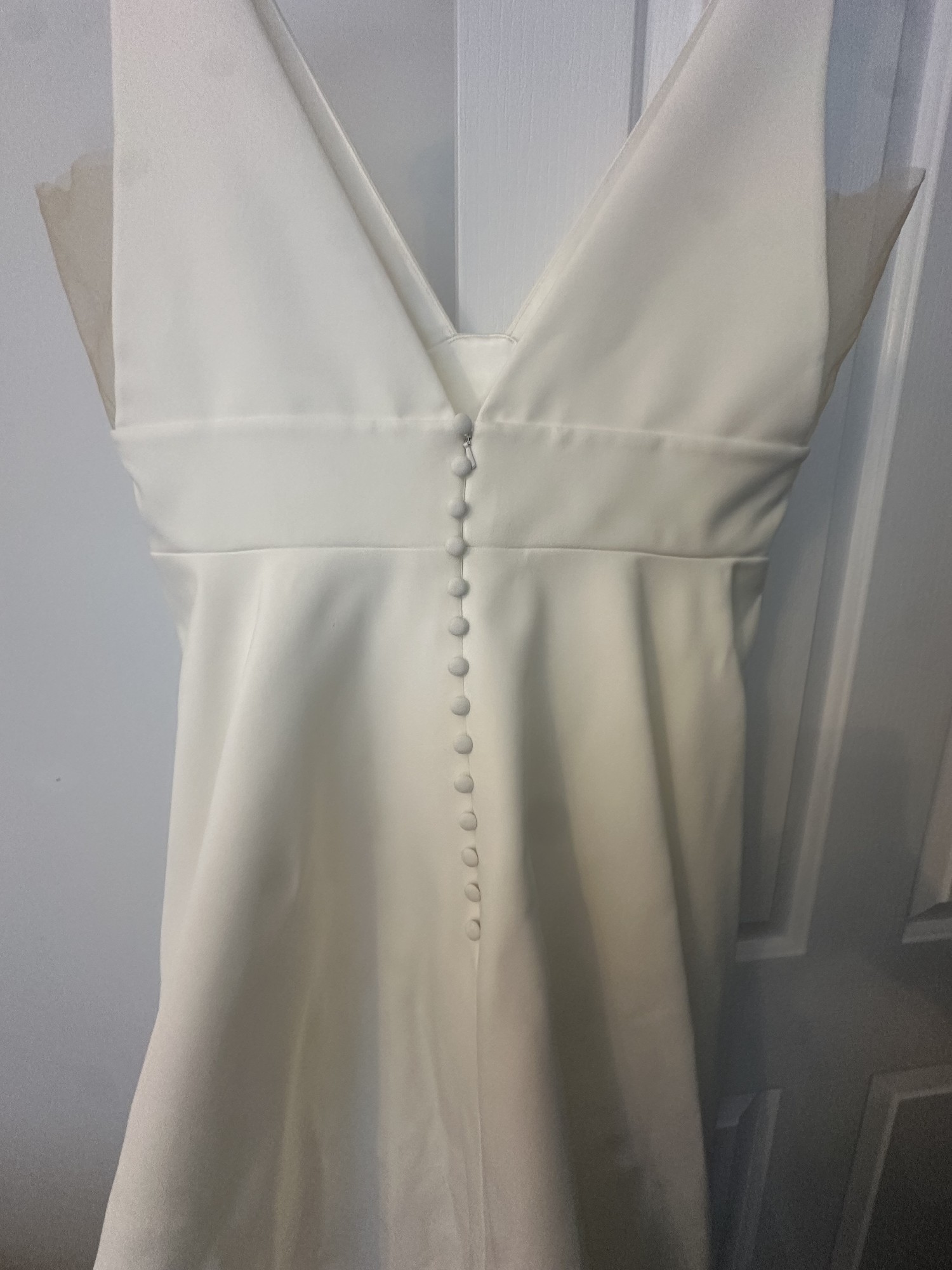 Invisible zipper closure, fabric-covered buttons, and hook and eye closure at the centre back”
