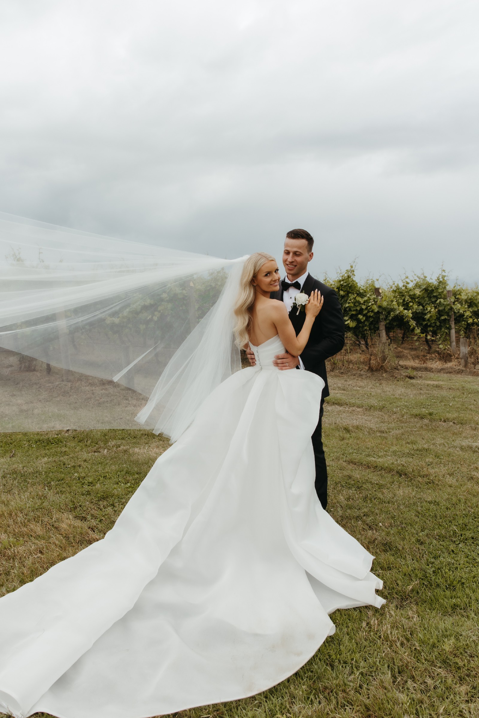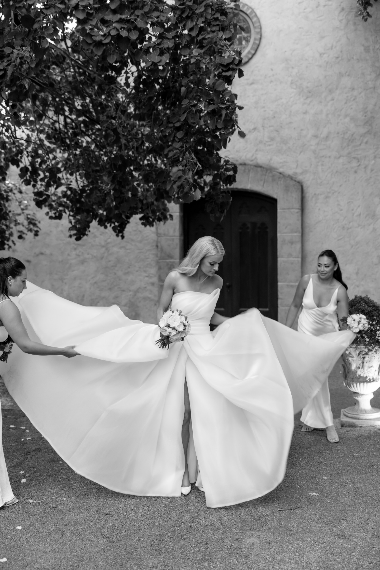 This exquisite custom Issy dress by Mariana Hardwick truly made my wedding day unforgettable and I want to give her another life to make another bride feel just as beautiful as I did. The stunning ballgown silhouette, complemented by a graceful floor-length design, created a picture-perfect moment as I walked down the aisle.