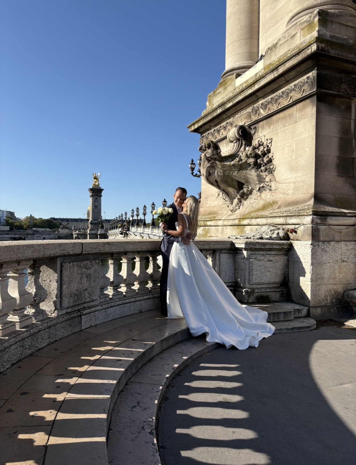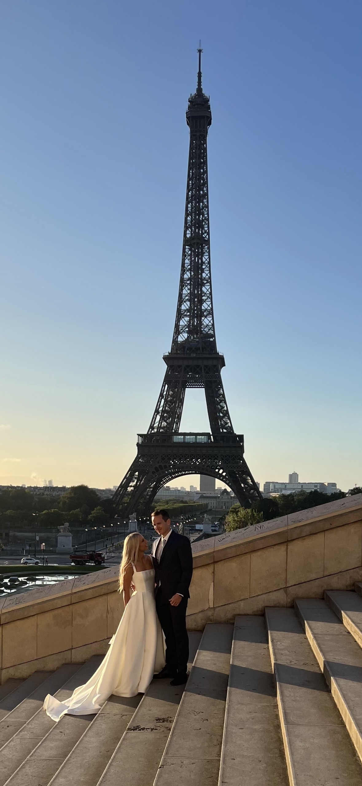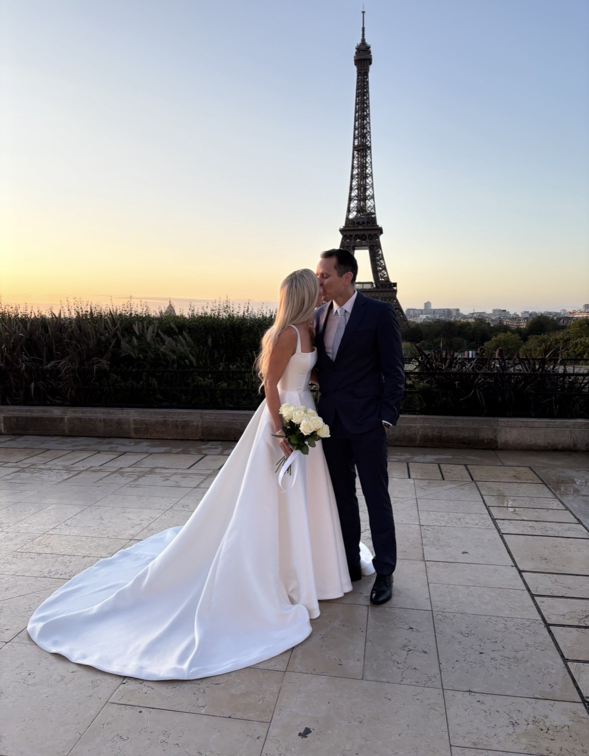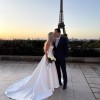 We eloped in Paris but the dress in located in Brisbane. Stunning, elegant, photographs well. Colour is bright ivory.