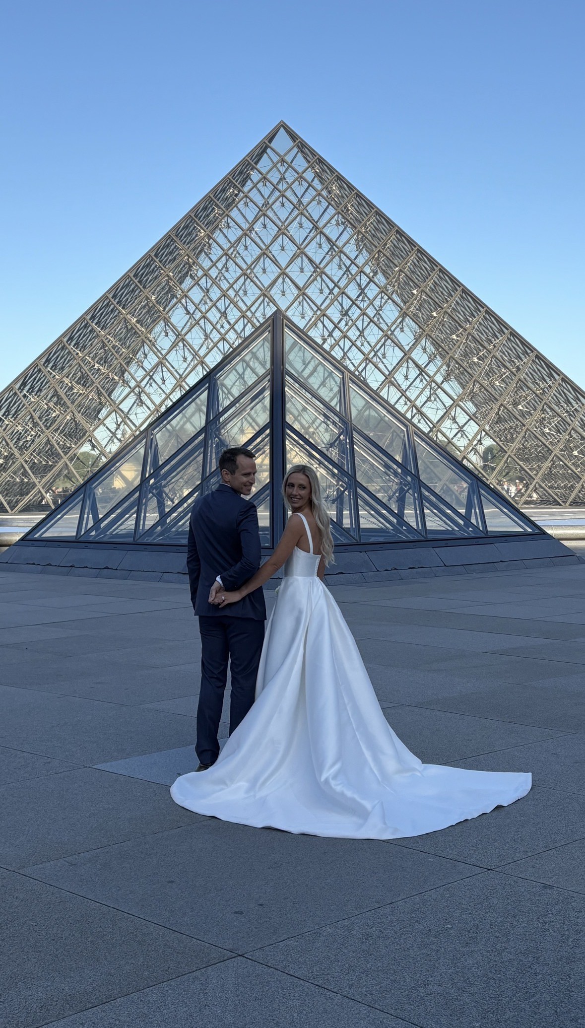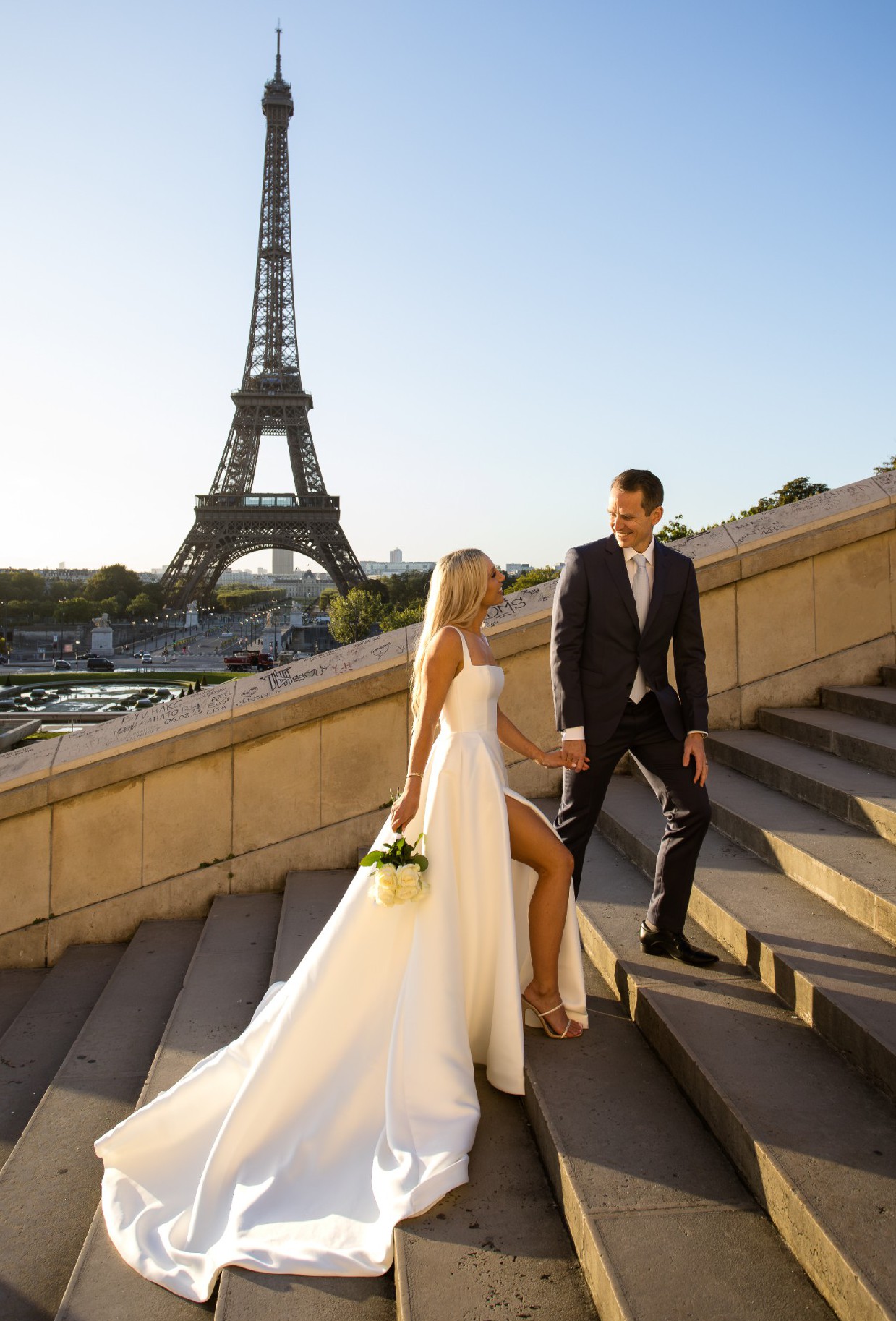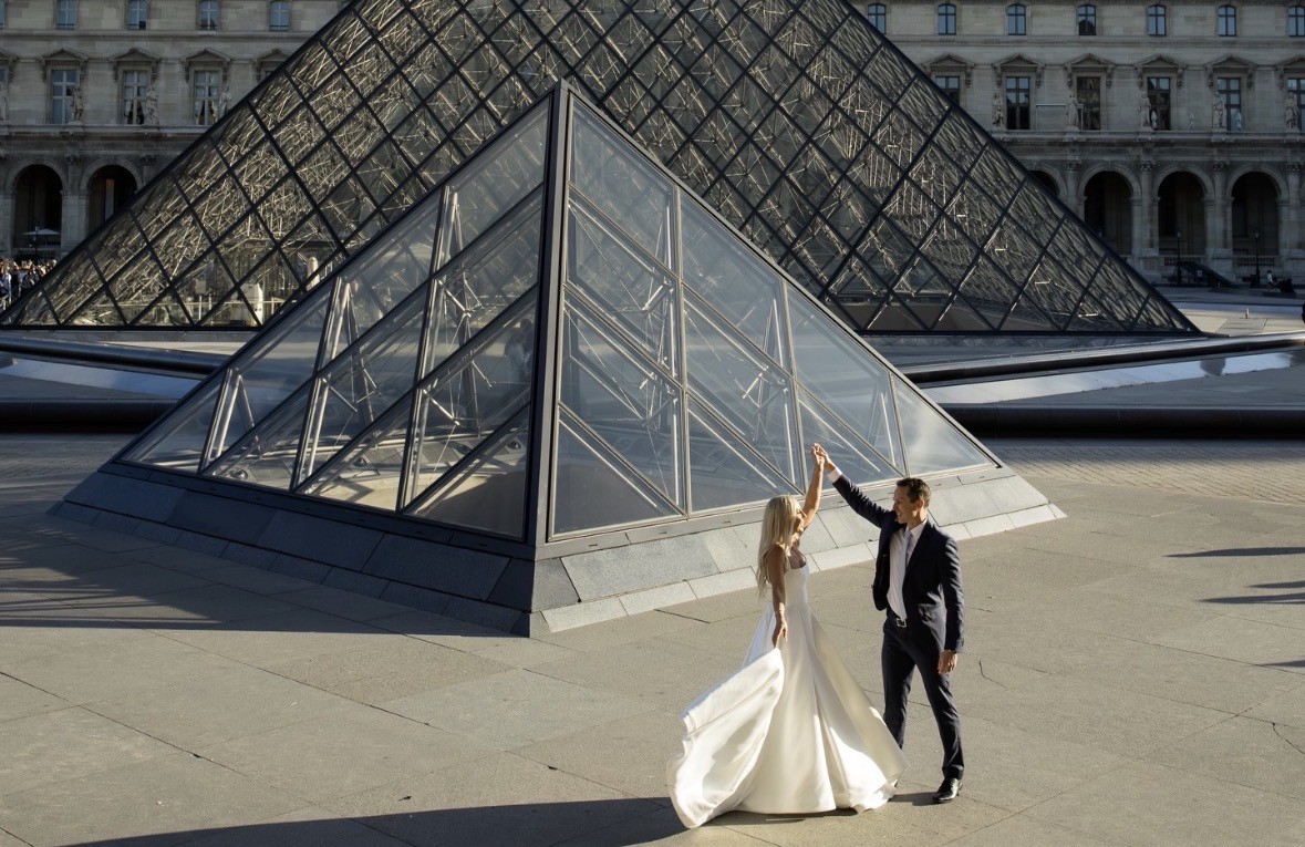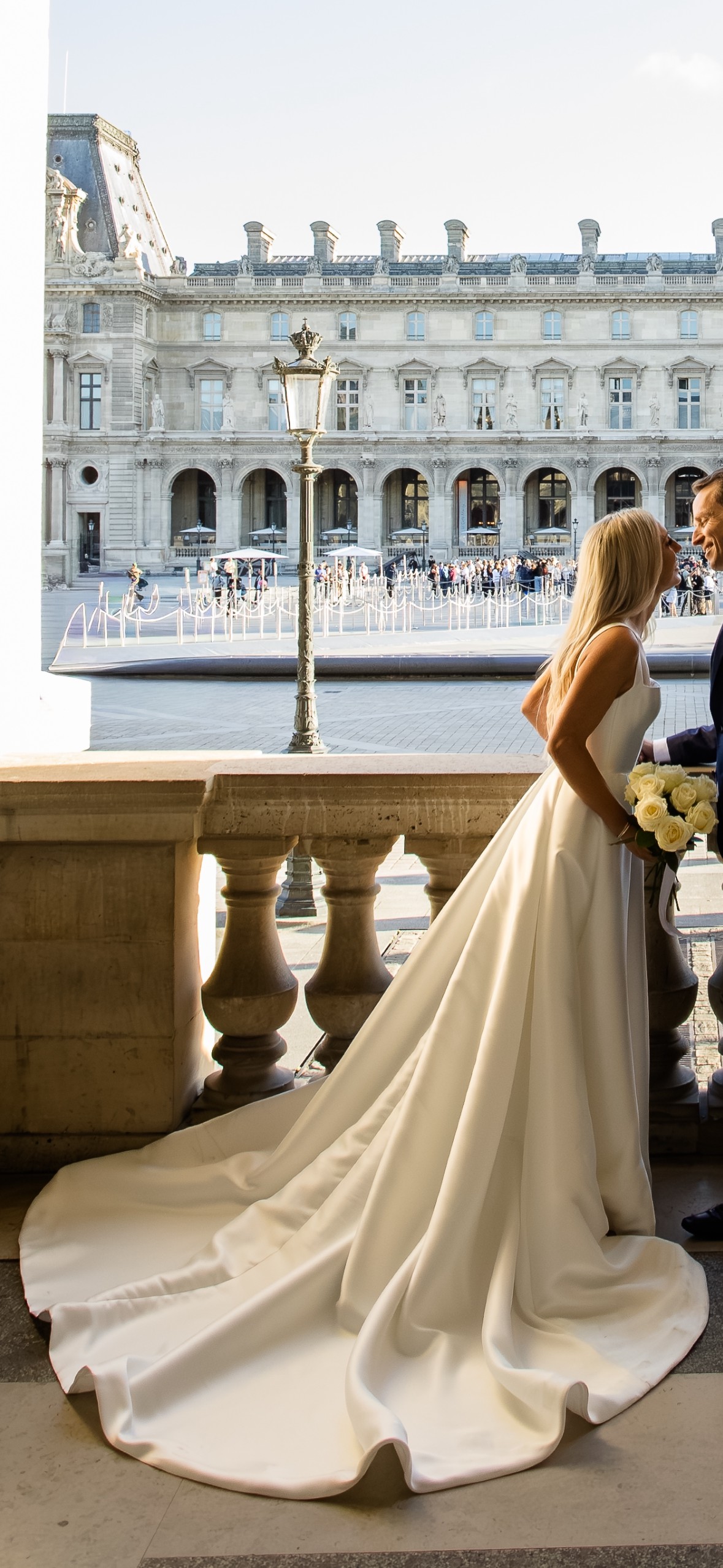 We eloped in Paris but the dress in located in Brisbane. Stunning, elegant, photographs well. Colour is bright ivory.