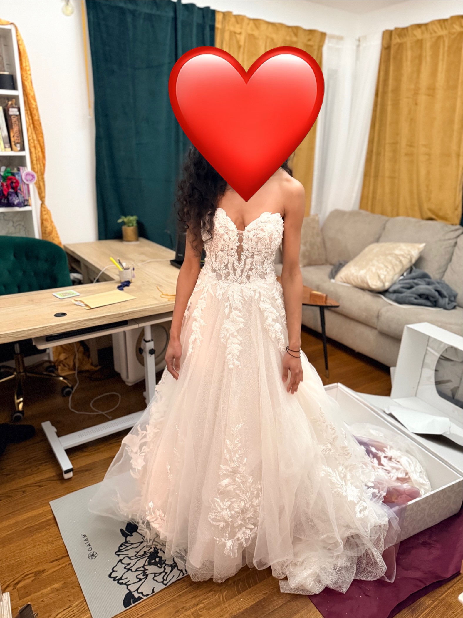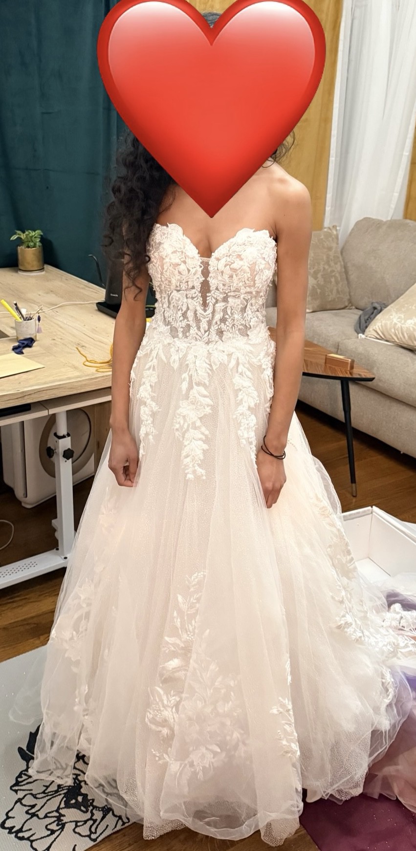Beautiful, romantic Morilee Dominique wedding dress! I bought it used and dry-cleaned off Stillwhite but ended up going a different direction, so I only wore it once to try on.
