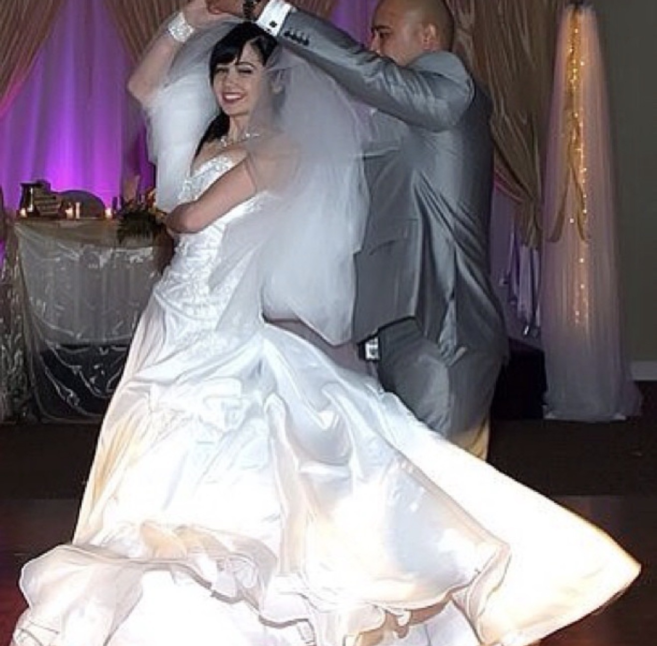 This gown has been altered to make a sweetheart neckline.