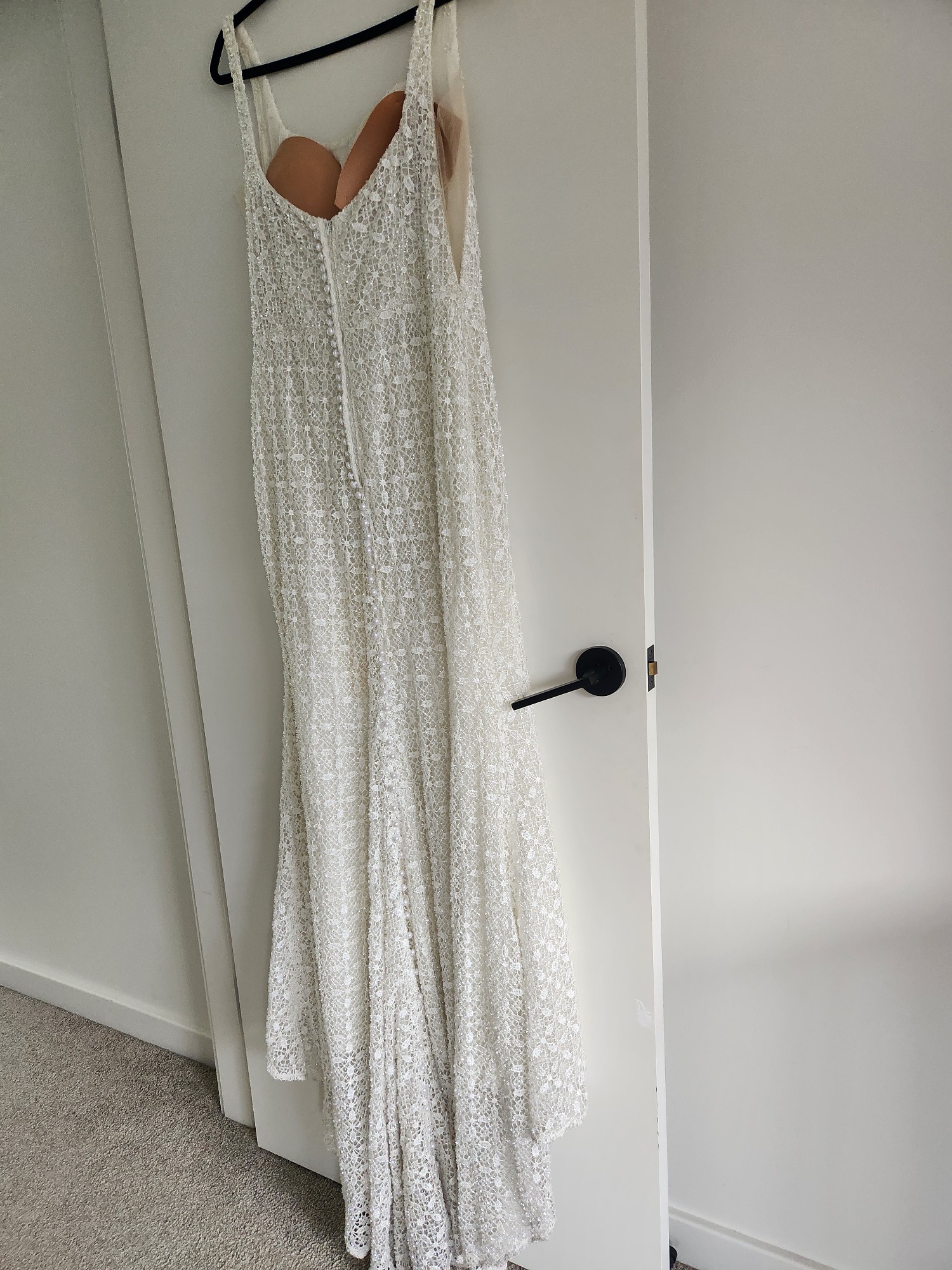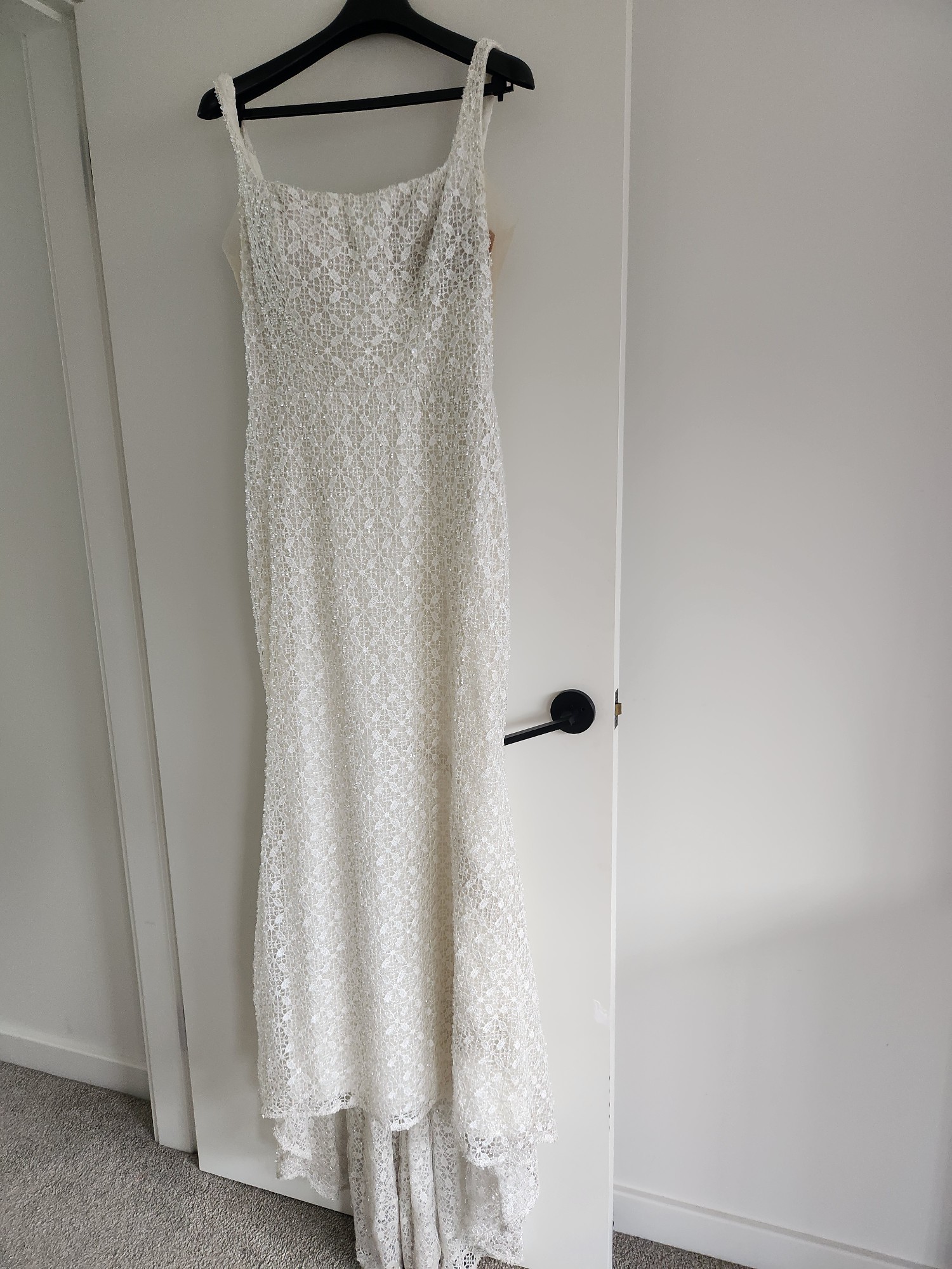 This stunning Maggie Sottero 'Star' wedding dress was the perfect choice for my special day, and now it’s ready to create unforgettable memories for another bride. The fit and flare silhouette beautifully accentuates curves, making you feel both elegant and confident as you walk down the aisle. The square neckline lends a contemporary touch, complementing the intricate beading that twinkles in the light, adding just the right amount of sparkle.