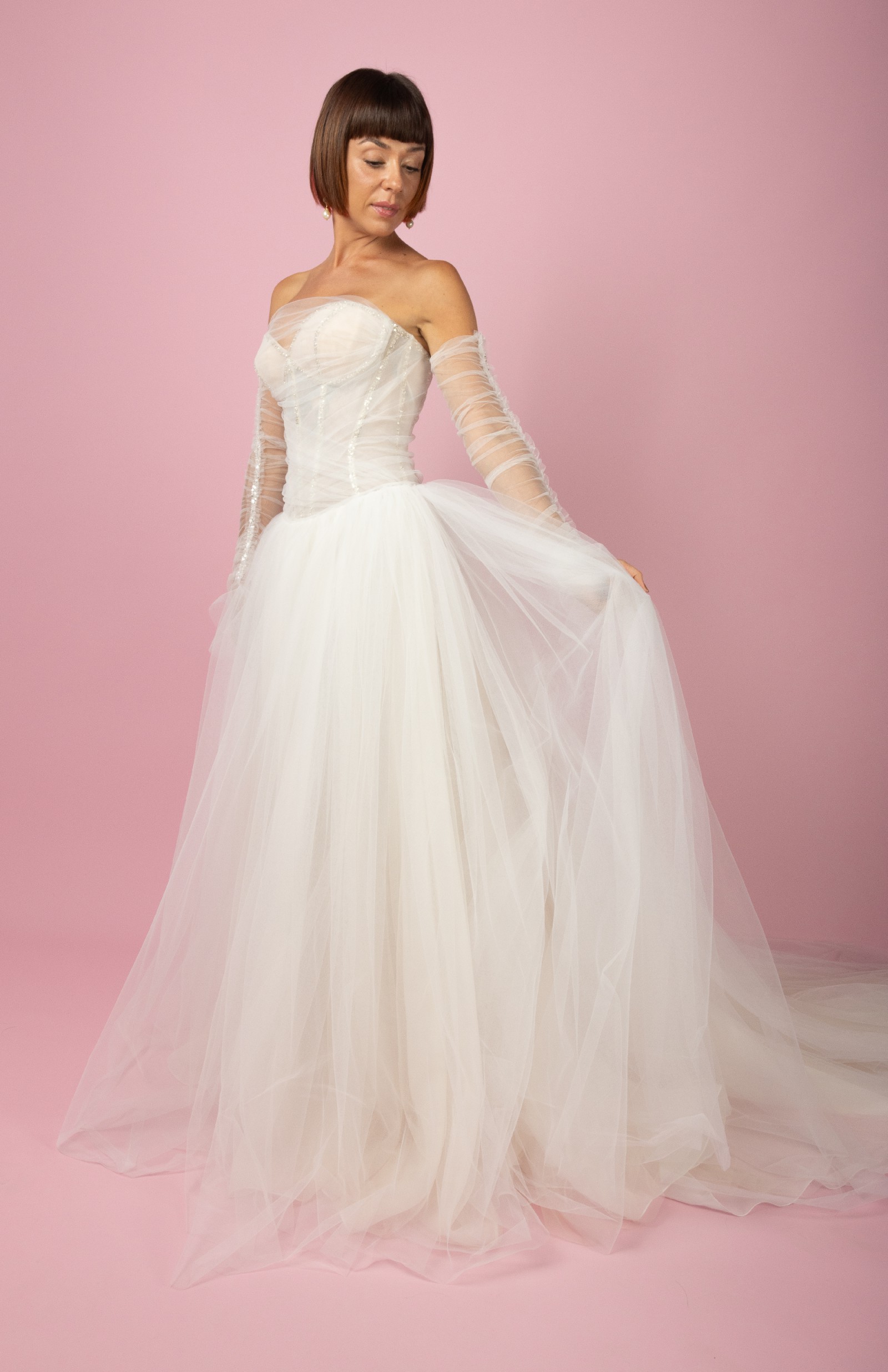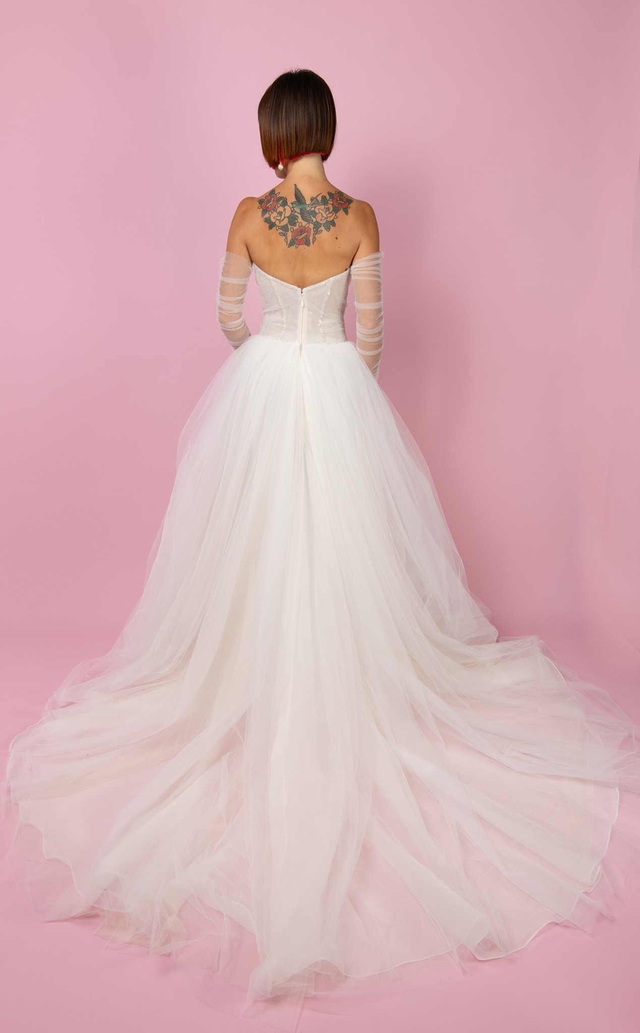 Enhance your look with charming long Tulle Sleeves to create a truly stunning ensemble.