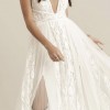 This wedding dress was worn for about 3 hours only in an elopement on the coast of California. No reception, so there isn’t any wear or tear from reception.