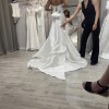 This Bliss by Monique Lhuillier dress is a dream come true for any bride seeking elegance and charm on her special day. With its exquisite fit and flare silhouette, this size 12 gown hugs the body in all the right places, creating a figure-flattering shape that enhances your natural beauty. The sweetheart neckline is romantic and timeless, providing the perfect canvas for your favorite jewelry.