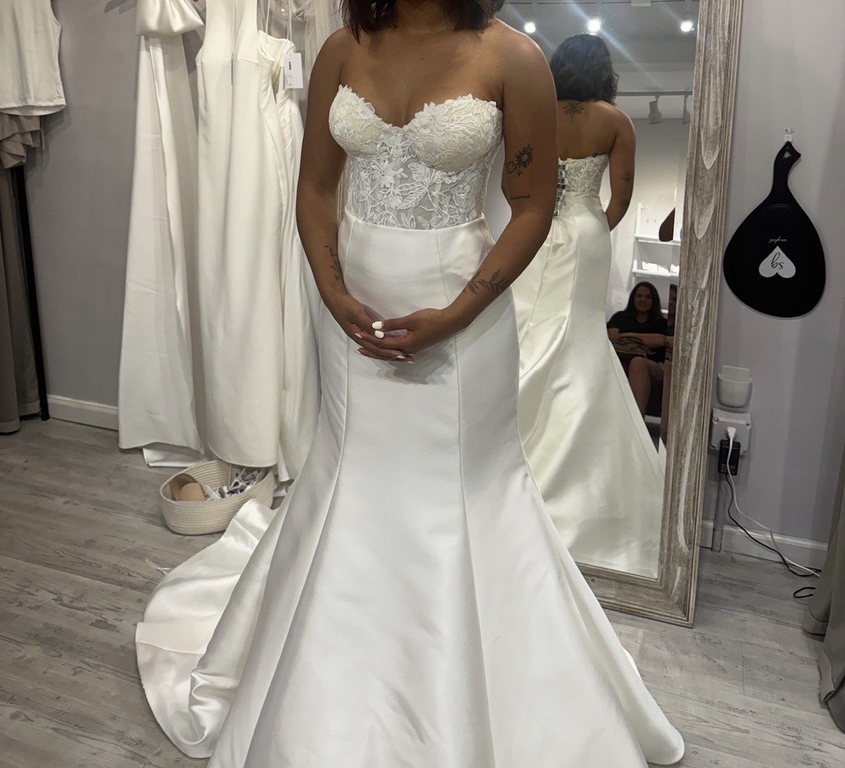 The strapless design offers a classic touch, while the mid-back adds a hint of sophistication. One of my favorite features of this dress is the delicate bows detail, which brings a charming and whimsical element that makes it truly stand out. Each bow adds a playful yet refined touch, ensuring you will feel like a princess as you walk down the aisle.