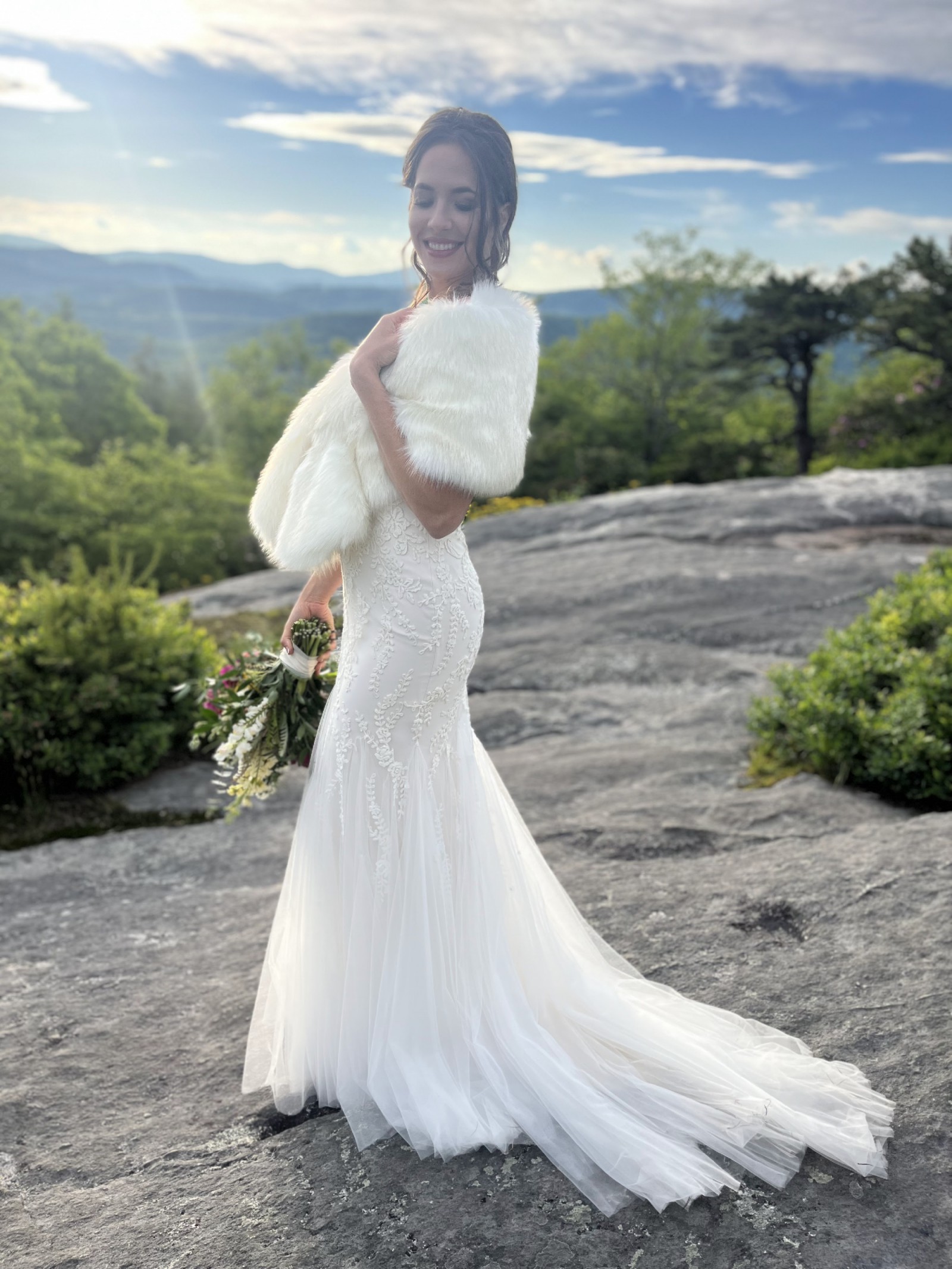White faux fur shawl included (as in last photo).