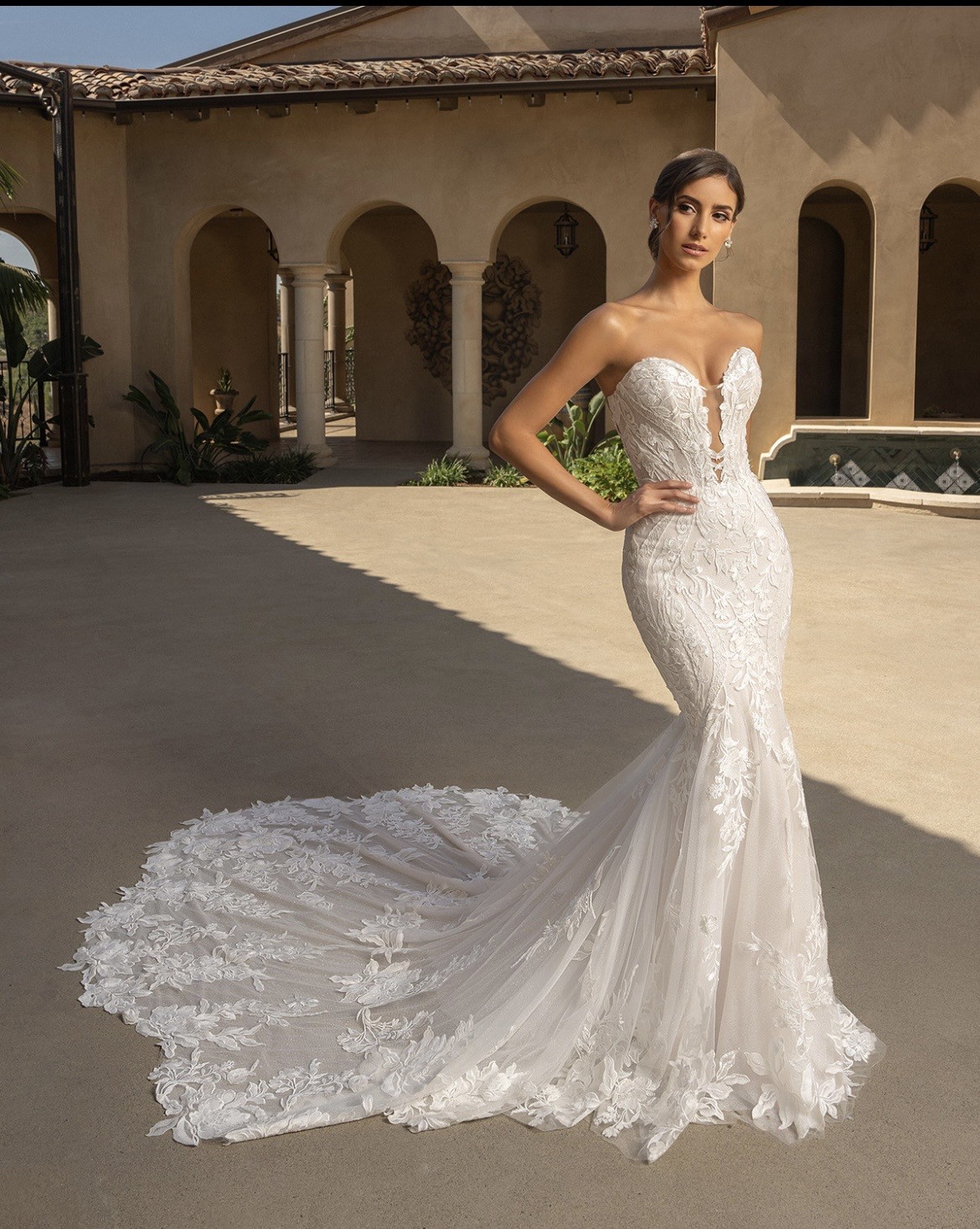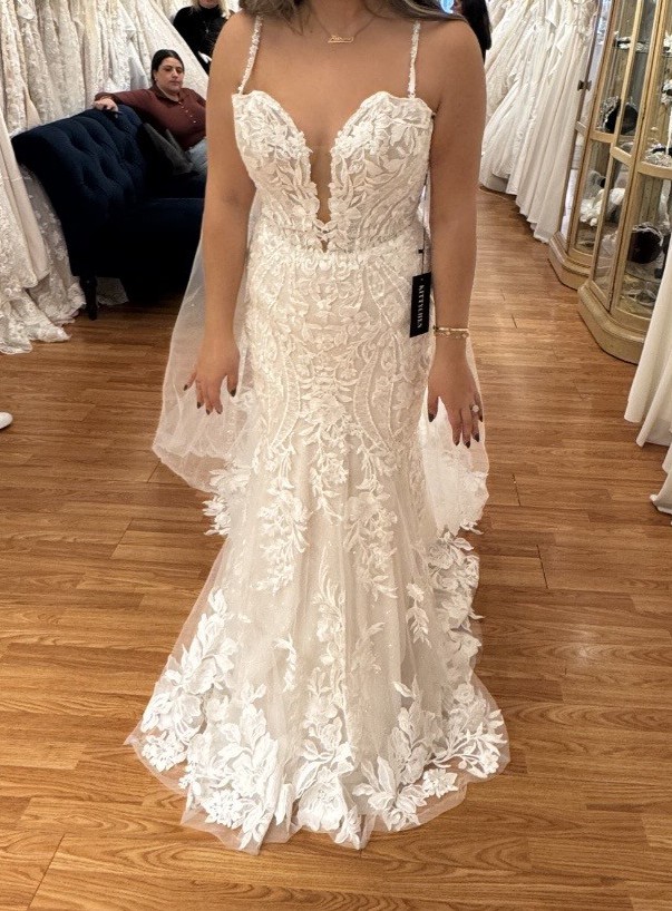 2025 KittyChen Couture Wedding Dress (OPHELIA) UNWORN. BRAND NEW CONDITION. Style: H2544D, Color: Ivory Nude, Size: 16, OPEHLIA is made with stretch lining. Dress is strapless, plunging sweetheart neckline and all over lace gown. I purchased with diamond spaghetti straps to add and a cathedral veil with crystal edge (can be sold with the dress if requested), the dress has not been altered. It was purchased and has never left the bridal shop or been worn. The dress is absolutely gorgeous, unworn, unaltered, completely brand new and has not left the bridal shop.