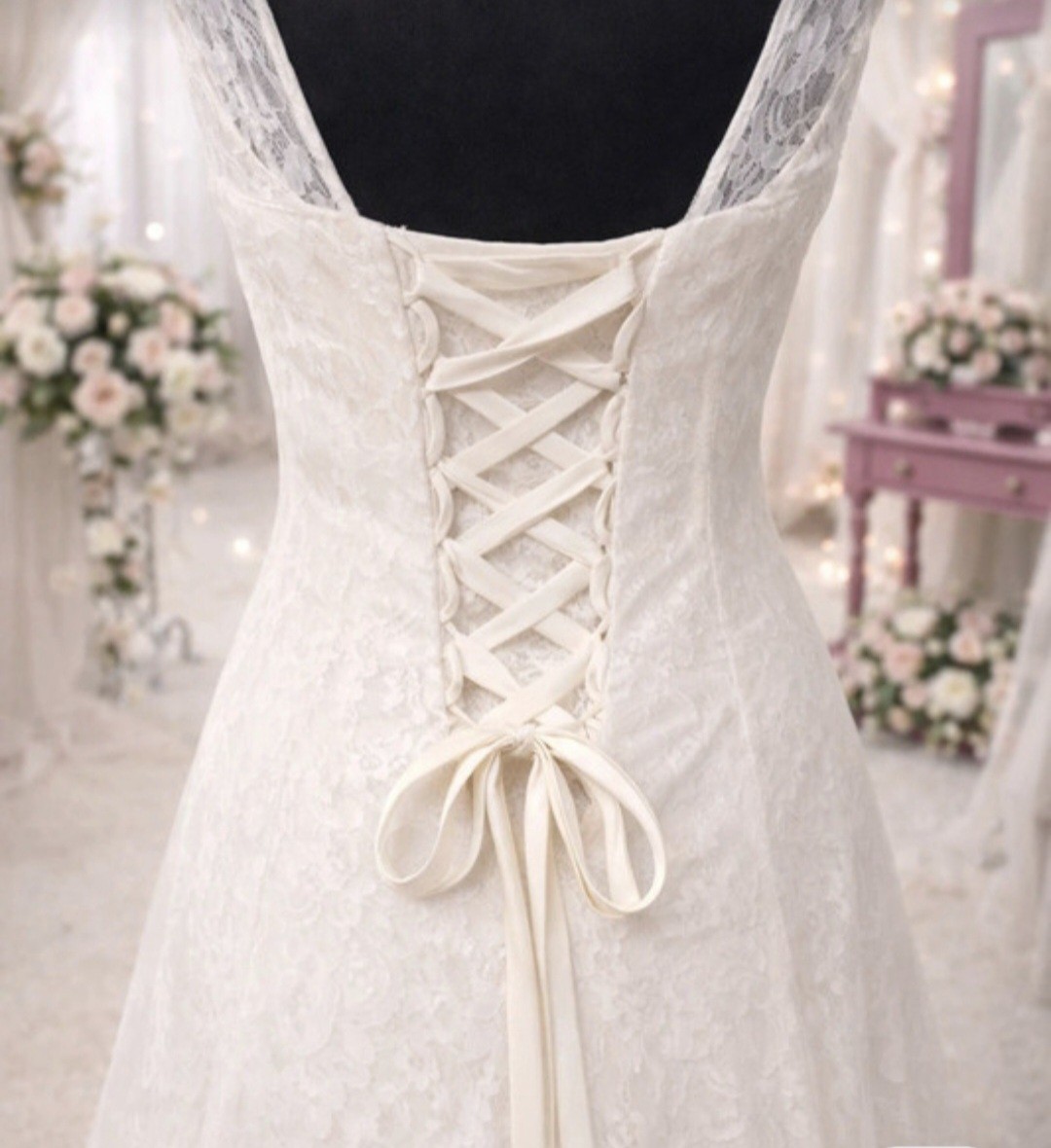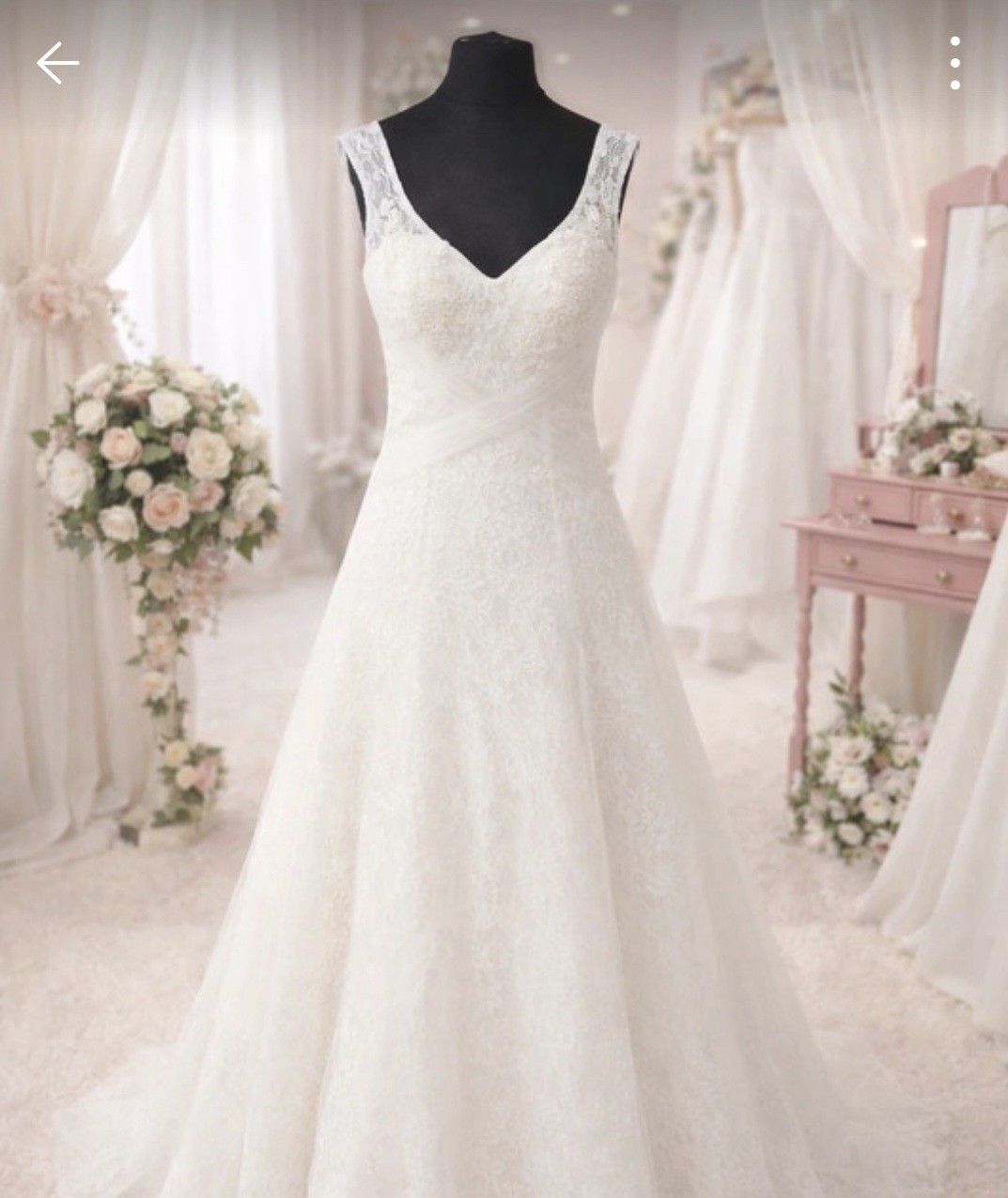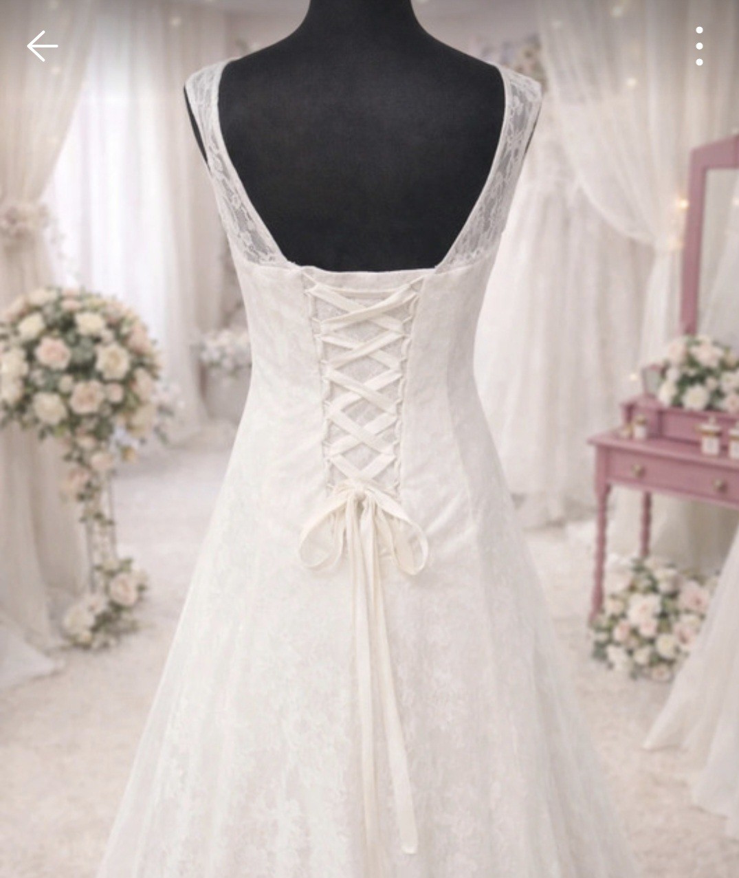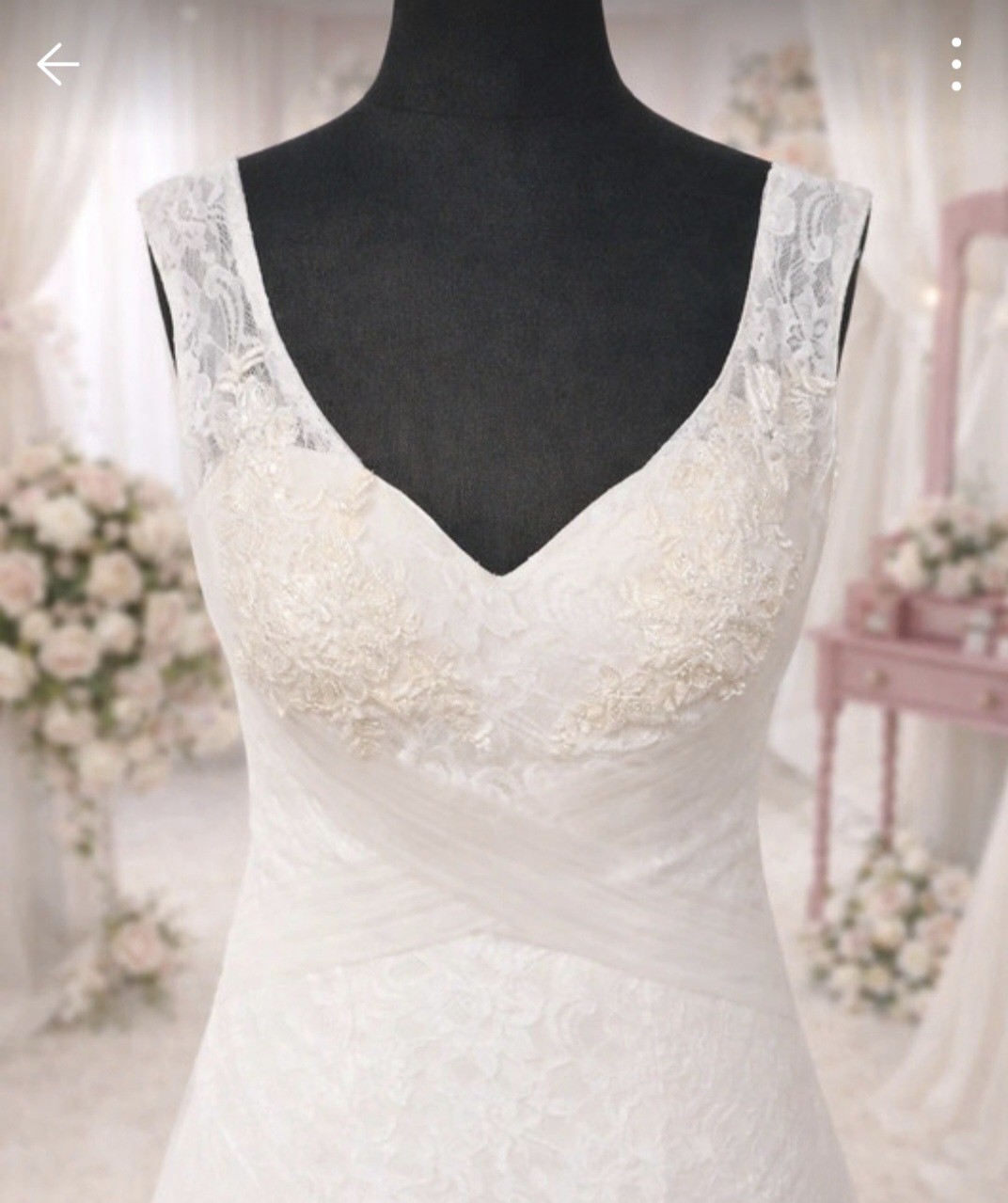 Wedding dress S /UK 8-10 : New with tags. Detailed flower dress with Chiffon overlay Crossover bodice Fully lined Full bust support Beautiful sparkle detail on upper bust Lace up Corset back Ivory Corset same material as dress Comes with dress bag. Originally bought from a sample shop but not to my taste. Beautiful dress for the right person.