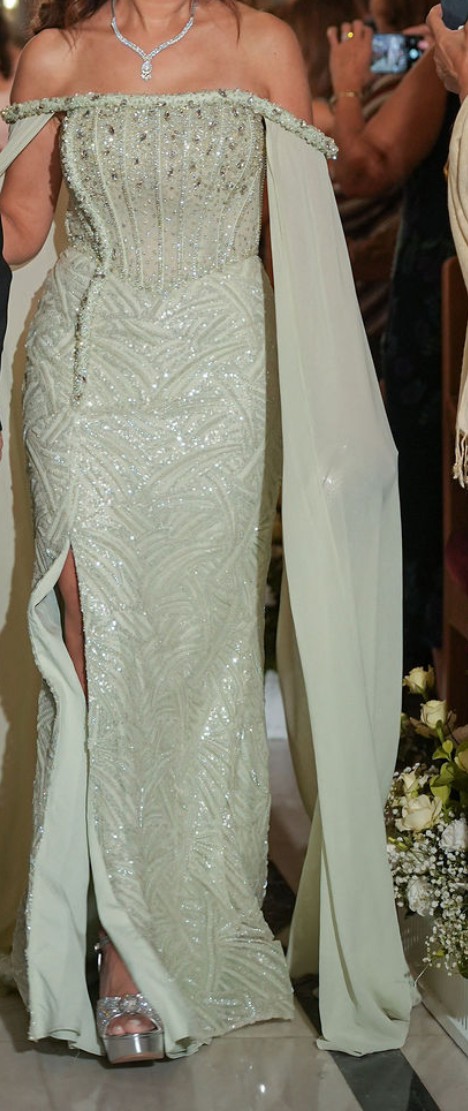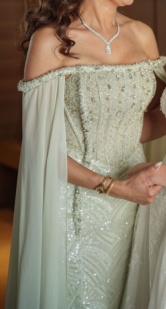 This stunning fit and flare dress that could work if you’re the maid of honor or mother of the bride/groom. It is the perfect embodiment of elegance and romance. With its beautiful off-the-shoulder neckline, it accentuates the shoulders and collarbone, making you feel like a true princess on the special day. The mid-back design provides just the right amount of allure without compromising on comfort.