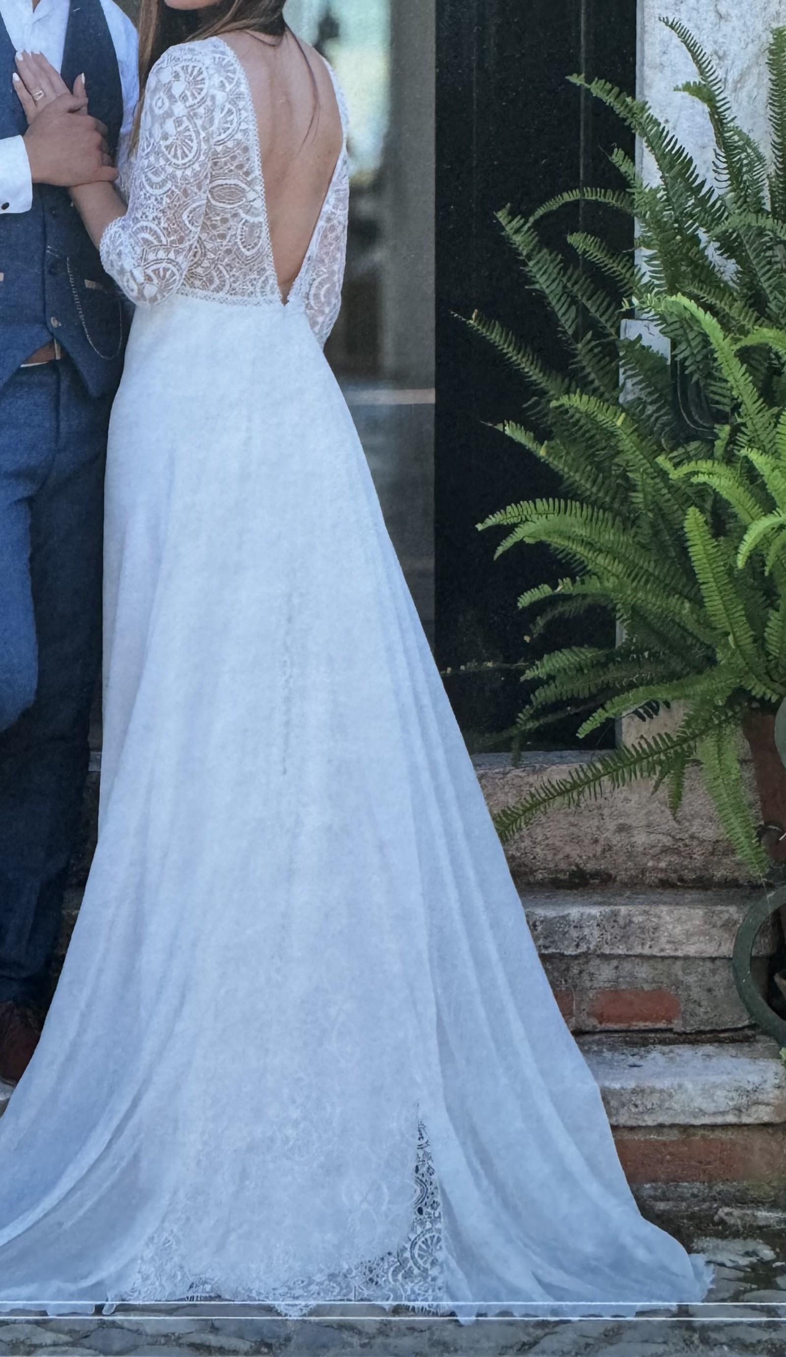 Elle a été soigneusement nettoyée par un pressing professionnel spécialisé dans les robes de mariée (facture disponible), pour un montant d’environ 100 €. Elle est donc en excellent état et prête à être portée pour une nouvelle histoire ✨
