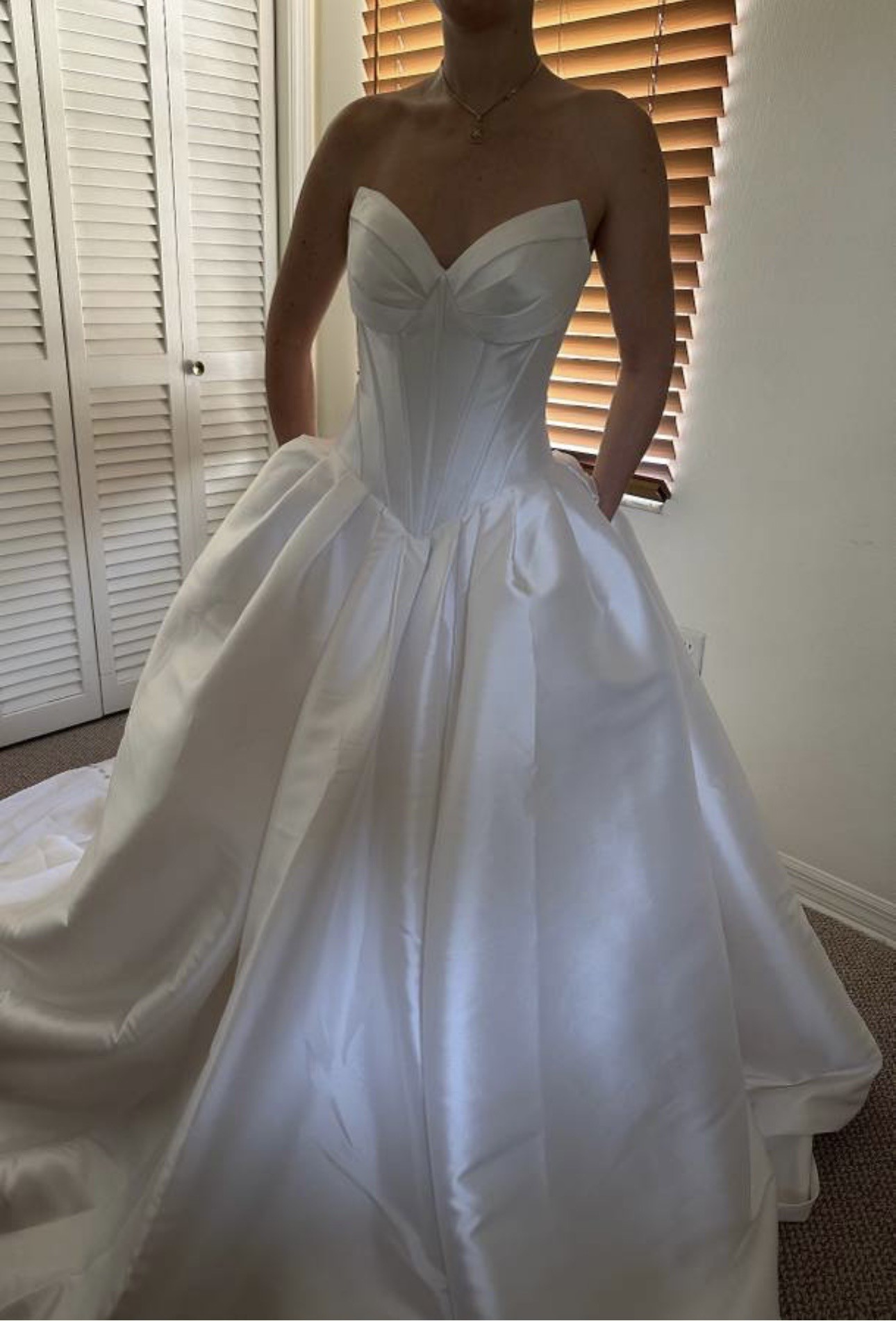 The dress comes with a satin lined veil