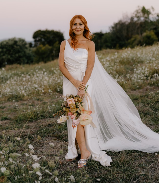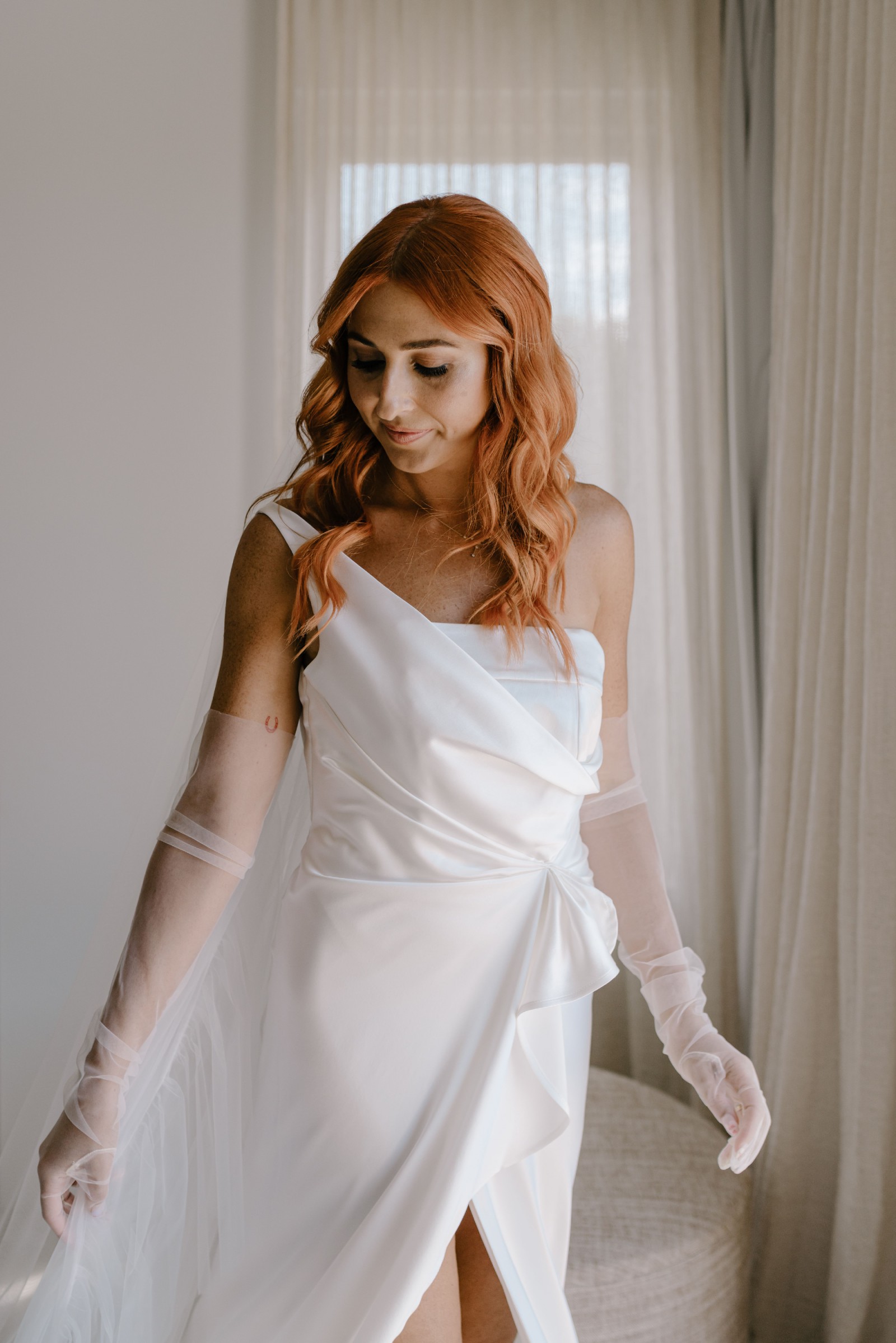 - hand draped one shoulder outer