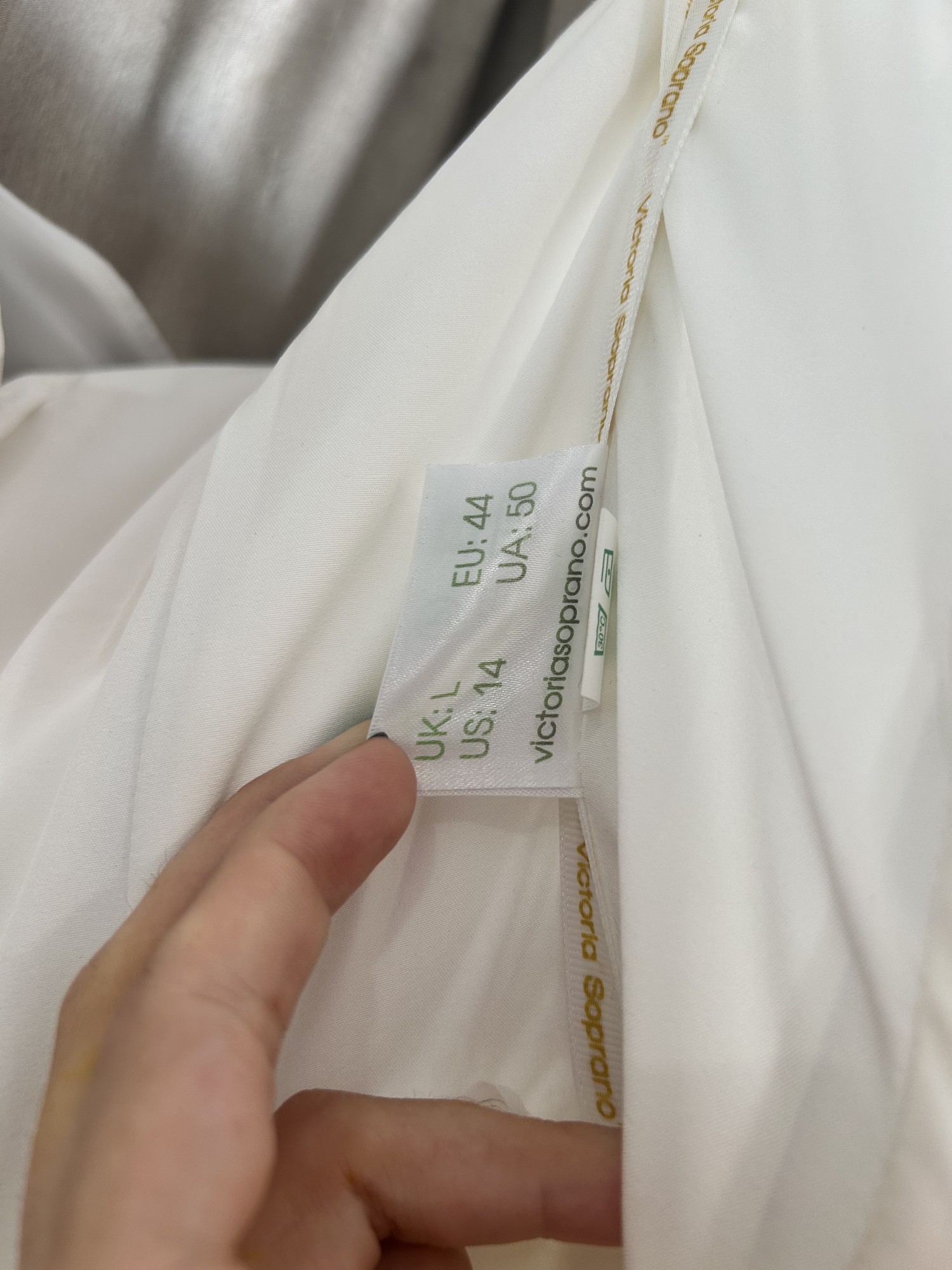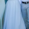- Hem shortened at front to show flat shoes (as pictured)