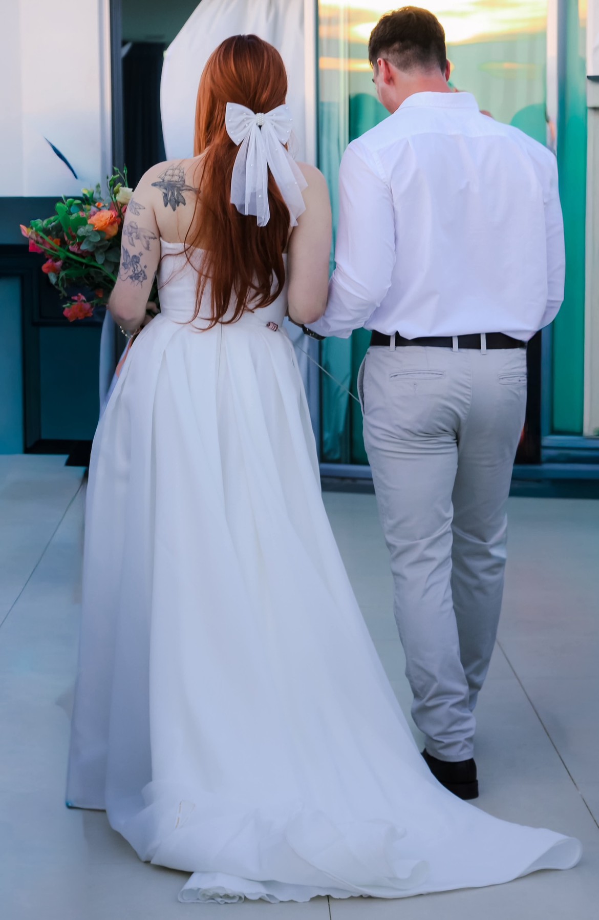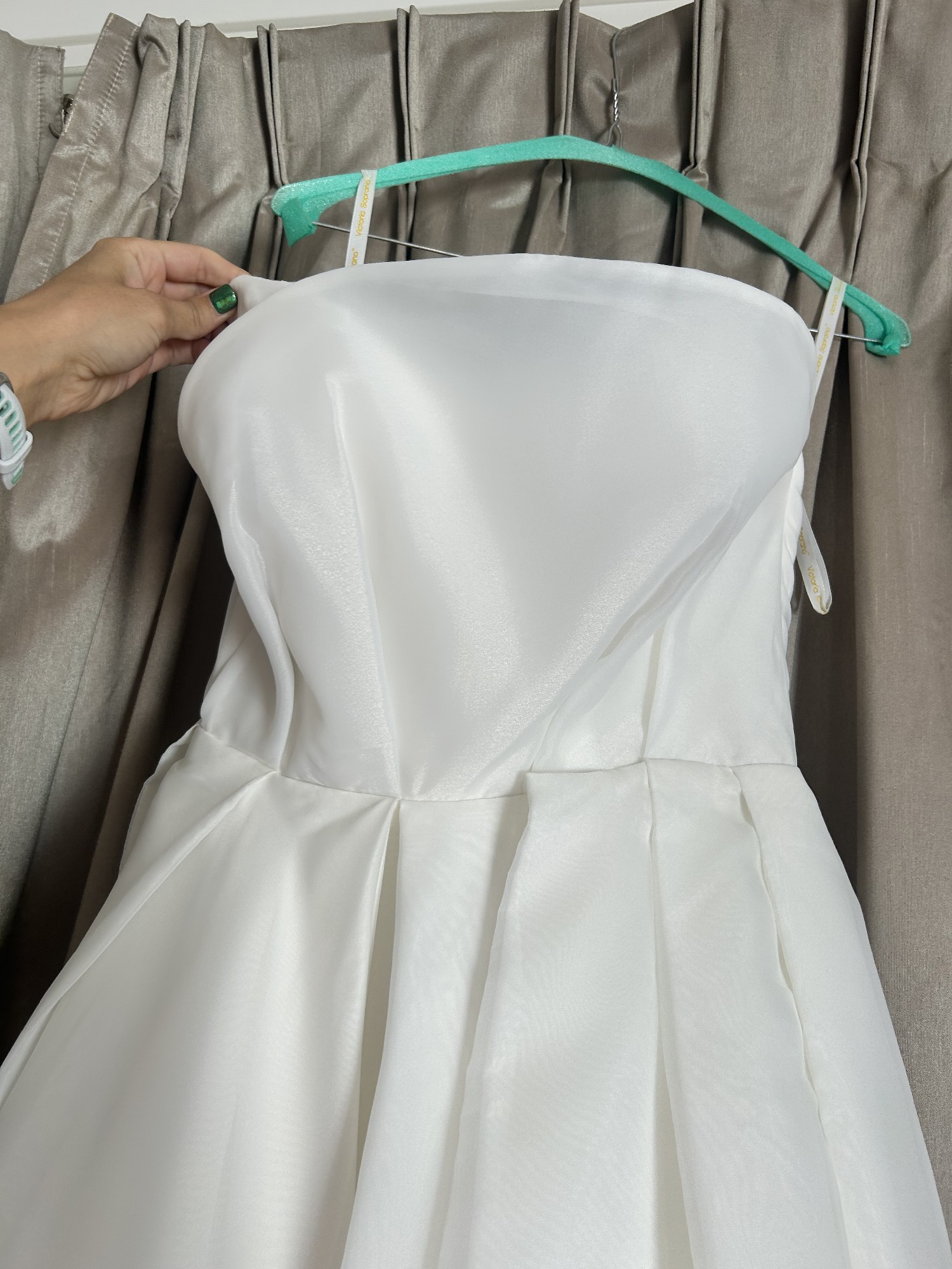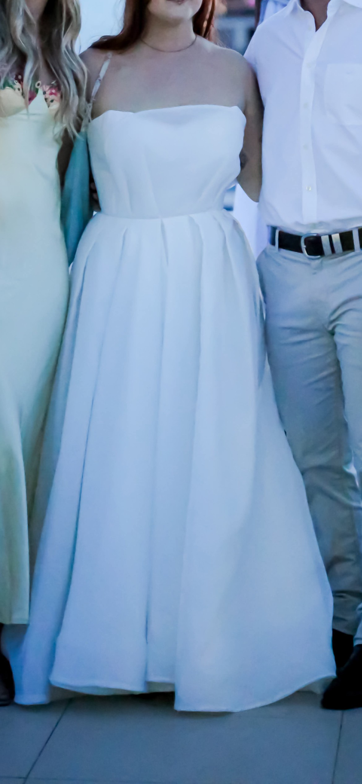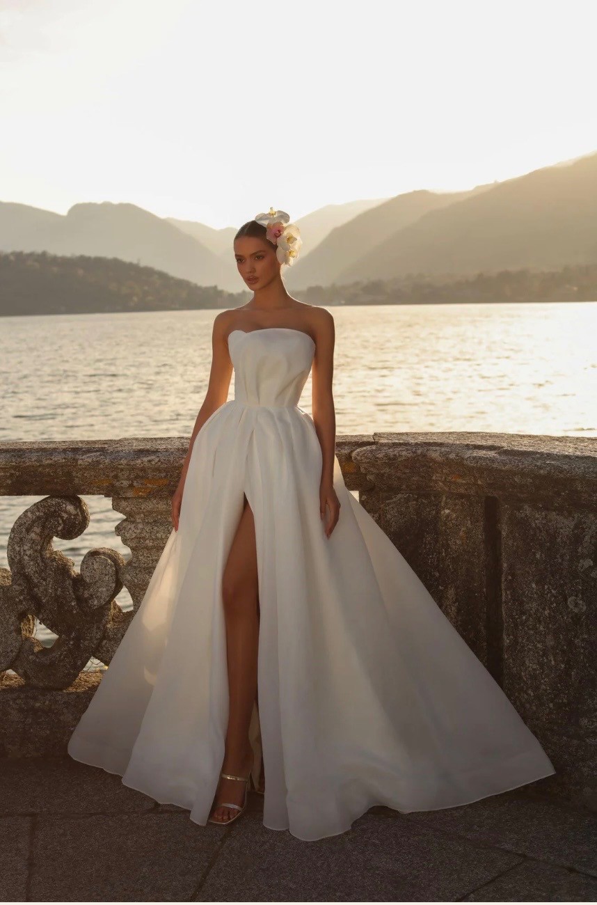 The strapless silhouette adds an alluring touch while the high slit introduces a hint of drama, ensuring you'll turn heads from every angle but can also appear as a full skirt in the photos of you wish.