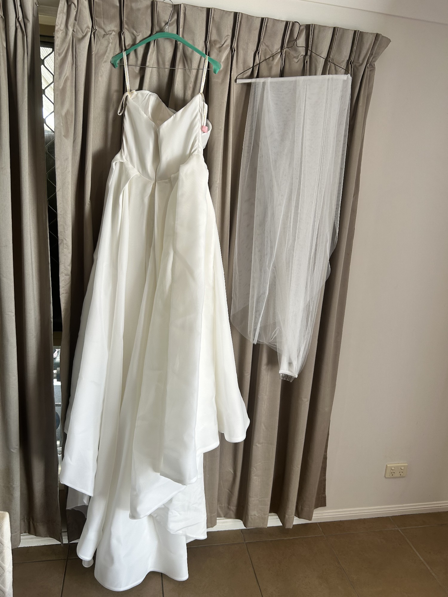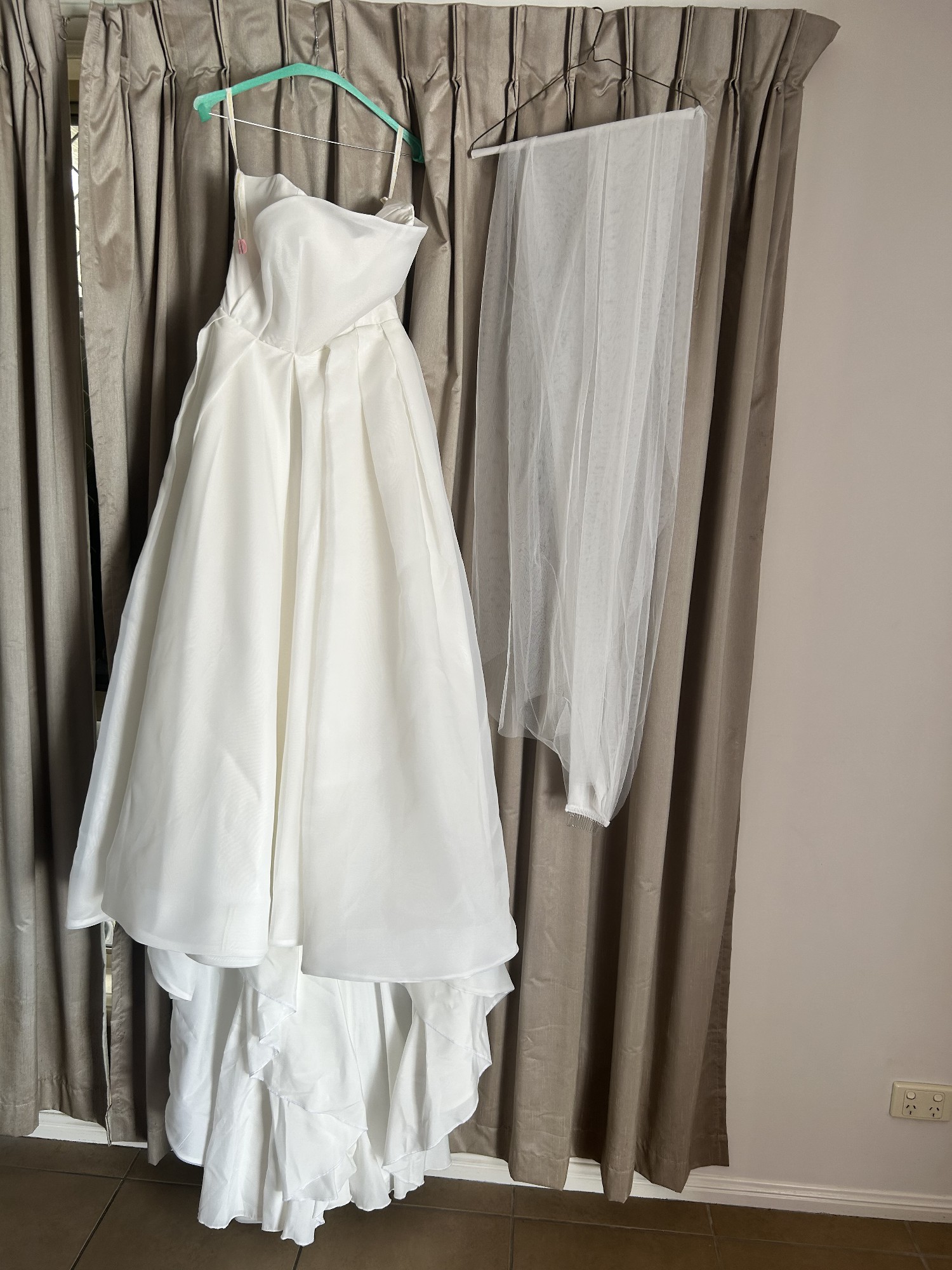 This, dress is a size 14 and was worn only once on my wedding day. I hope its next owner will enjoy every moment in this masterpiece.