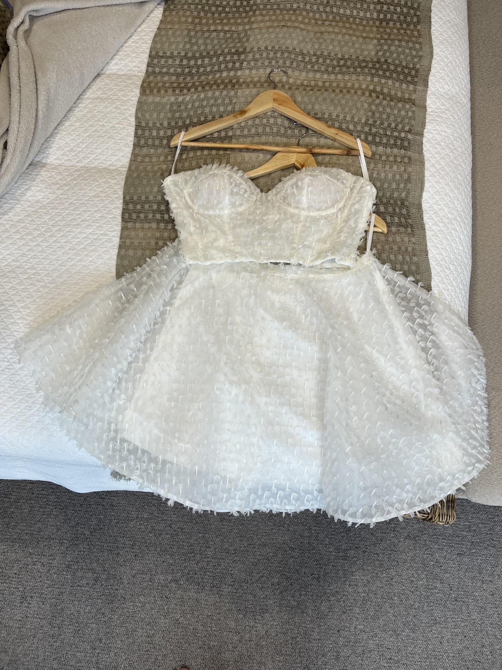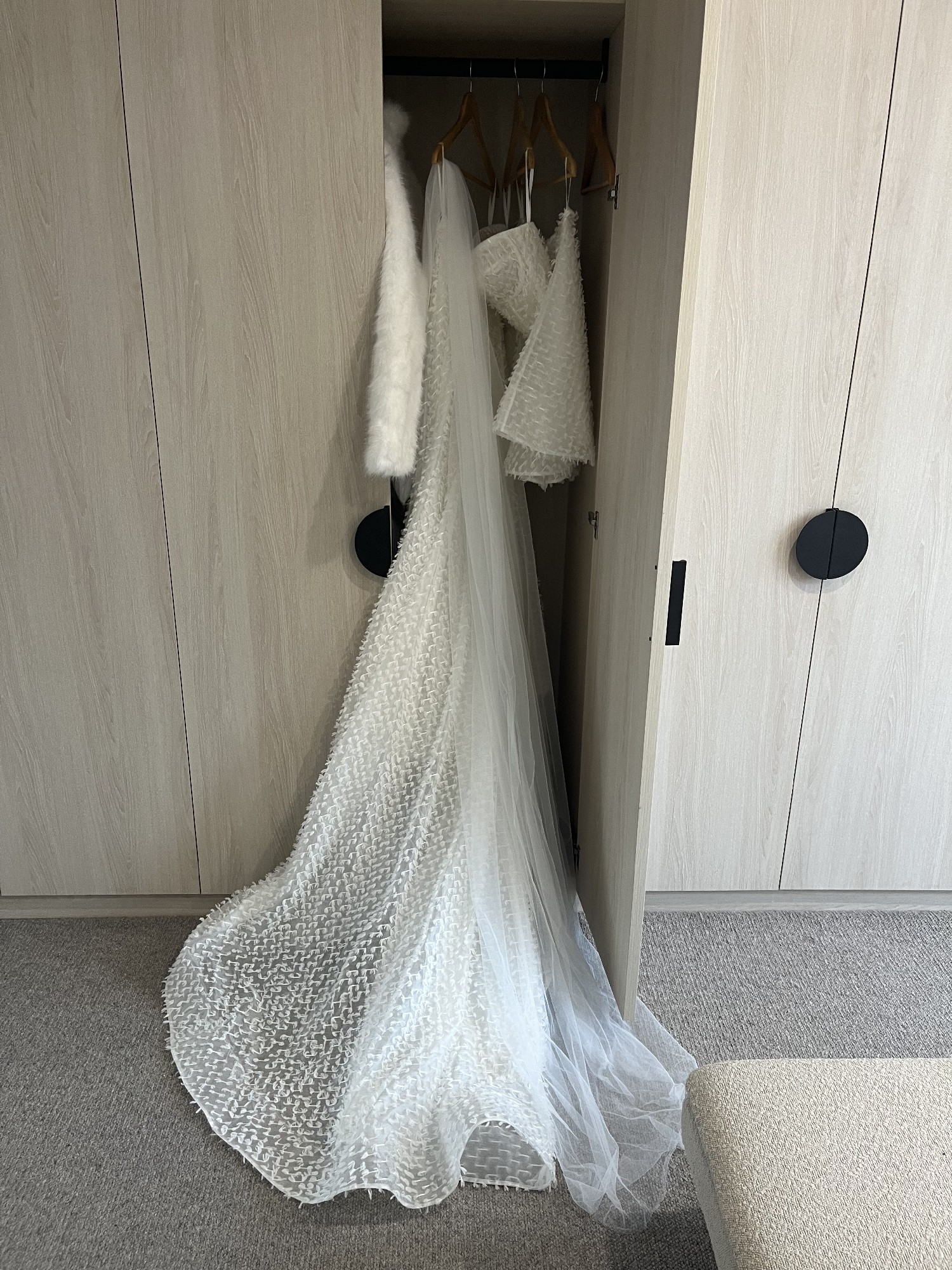 Happy for you to come and have a look and try it on if you're in Melbourne. Also selling brand new shoes that match the ones in the photo, an elegant, simple, 3m ivory veil, and a short, ivory, fluffy faux fur jacket.