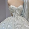 This enchanting ballgown encapsulates timeless elegance and modern romance, making it the ideal choice for a fairytale wedding. Crafted in luxurious lace, the dress features a sweetheart neckline that beautifully frames the décolletage while exuding an aura of sophistication. The corset back ensures a snug fit that flatters the figure and allows for a customizable silhouette, perfectly complementing the bride's unique shape.