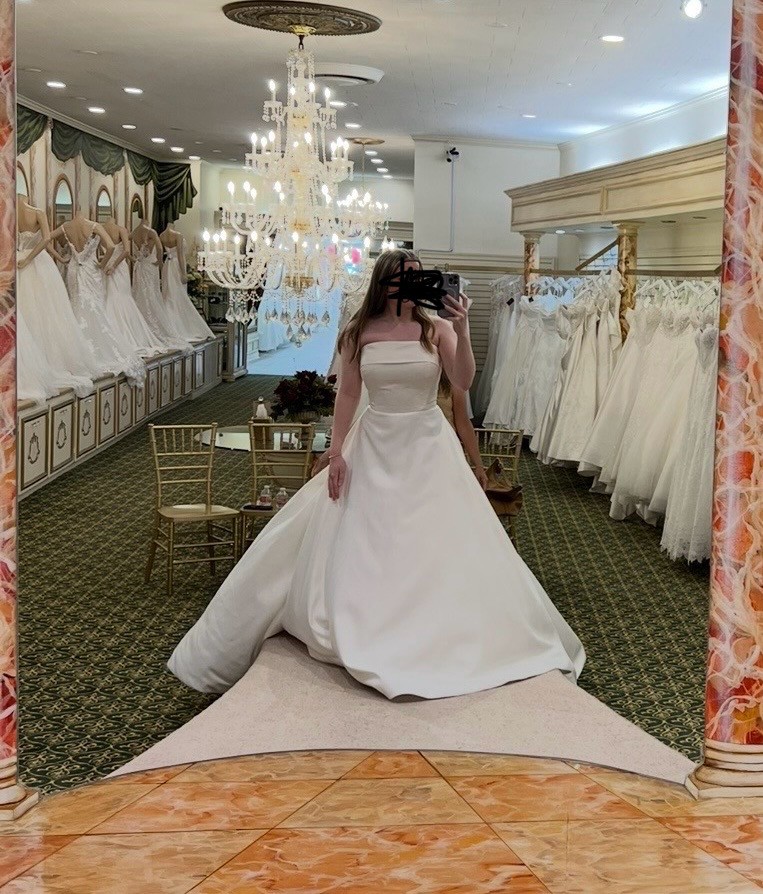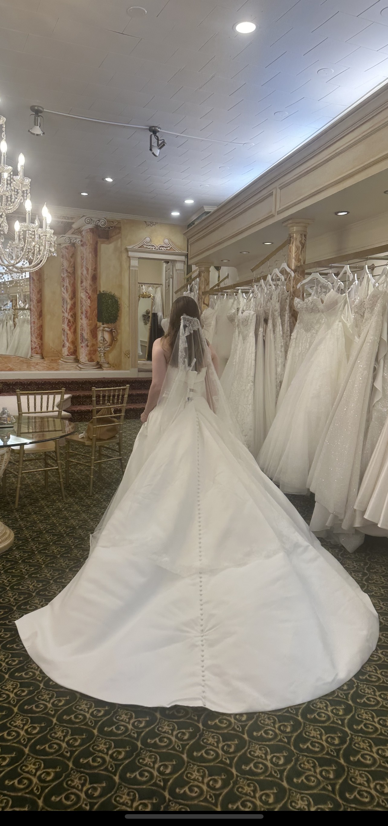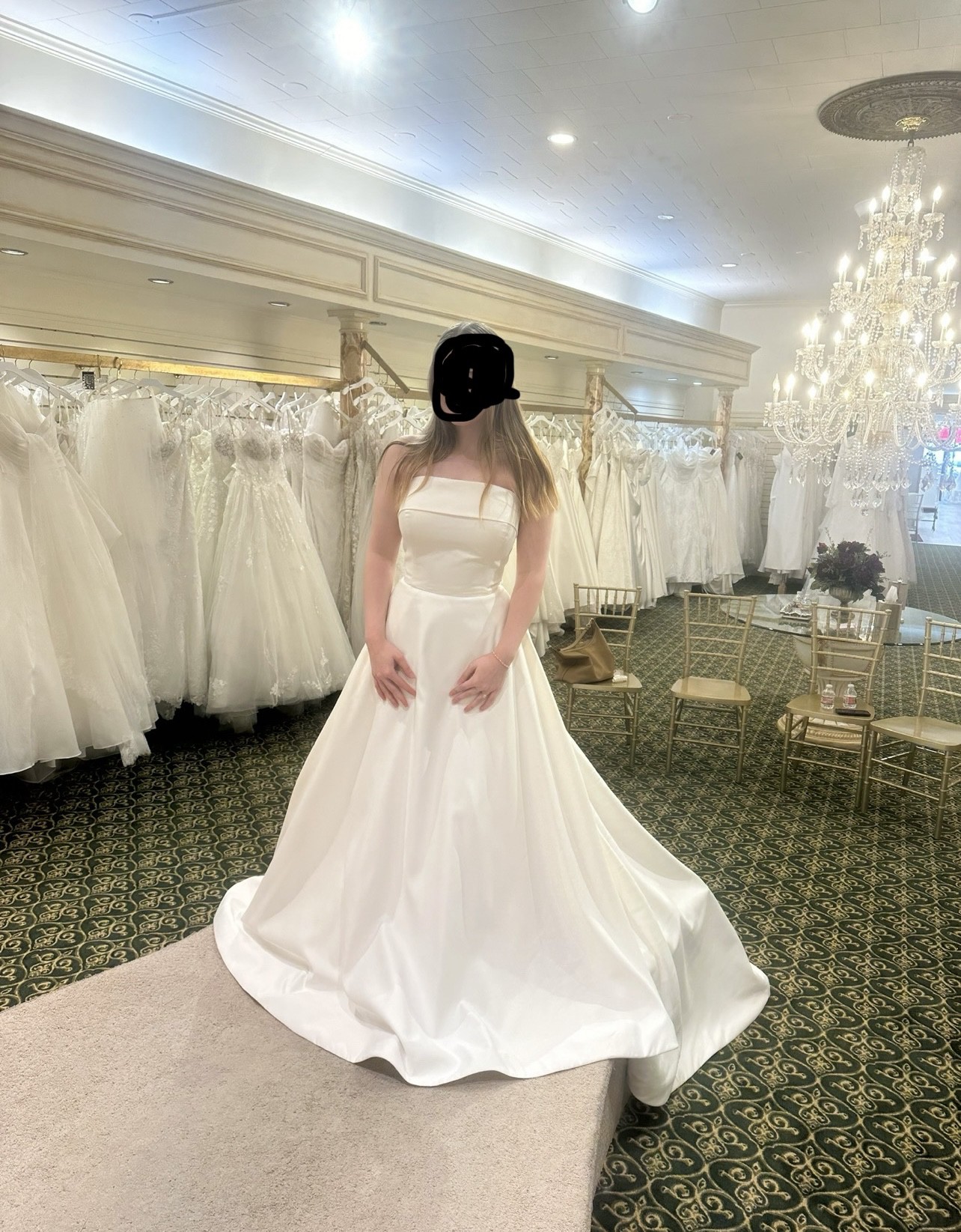 Stella York 7045- never able to be worn, no alterations made. Bridal size 8, fits regular size 4. Color- ivory. Belt included.