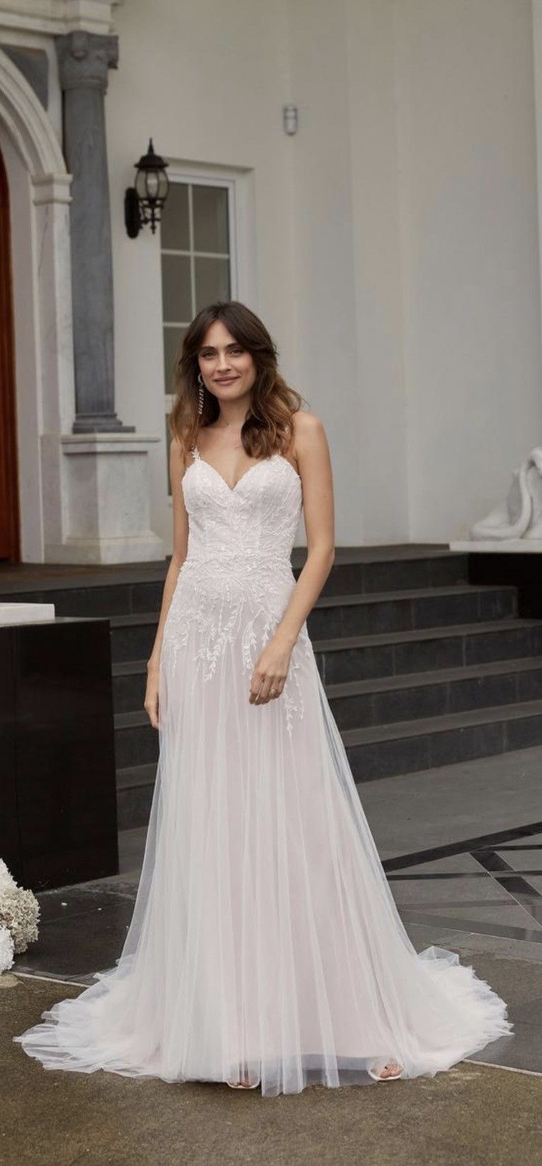 This Dove wedding dress by Madi Lane is a stunning embodiment of romance and elegance. Designed with a flattering A-line silhouette, it beautifully drapes to the floor, allowing for graceful movement as you walk down the aisle. The sweetheart neckline enhances your natural beauty, while the delicate spaghetti straps provide just the right amount of support without sacrificing style.