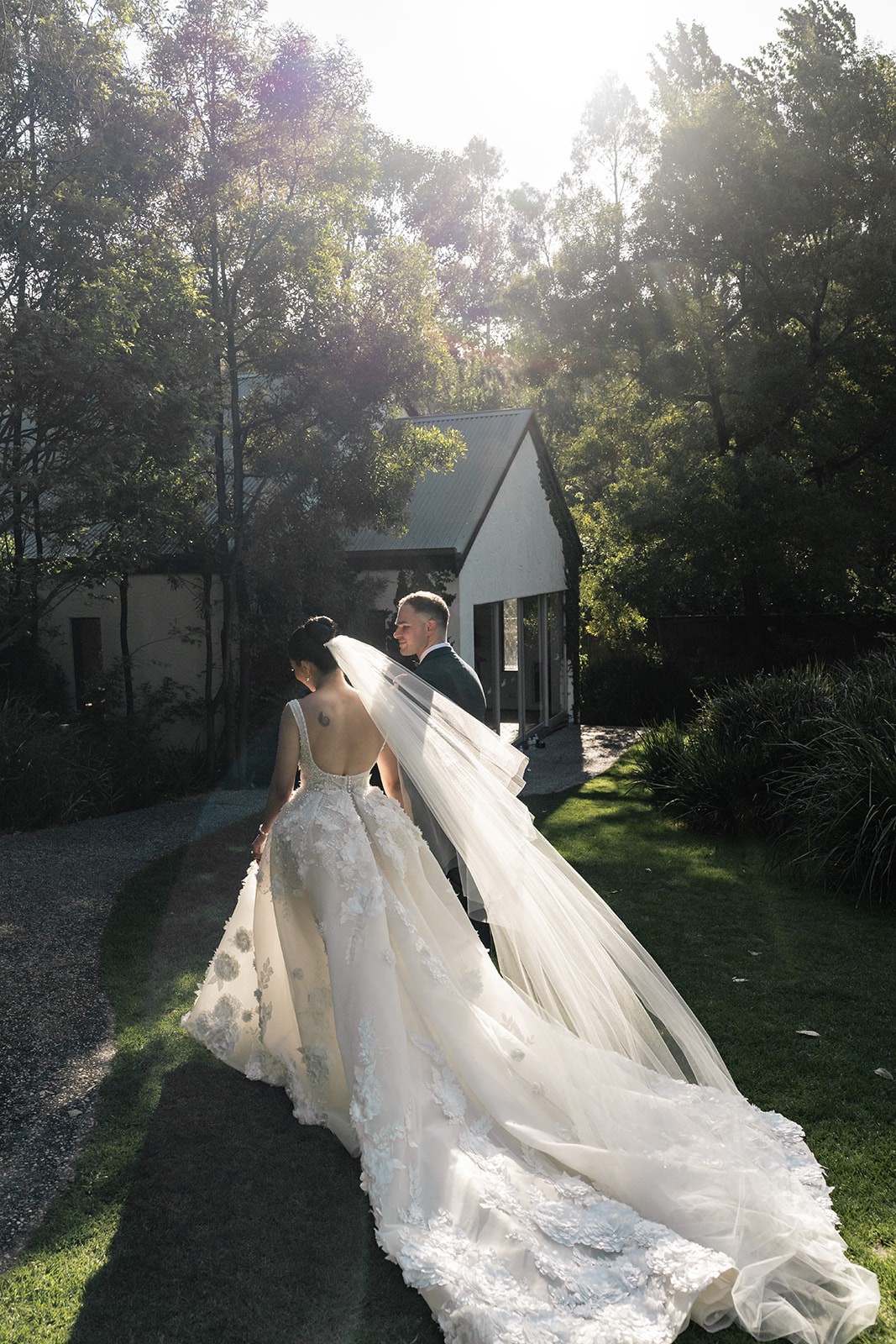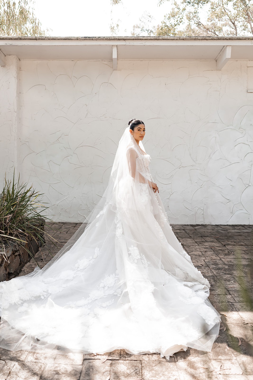 Hemming: The front hem was professionally shortened (I am 160cm and wore 4cm heels), while the 3-meter cathedral train remains at its original, magnificent length.