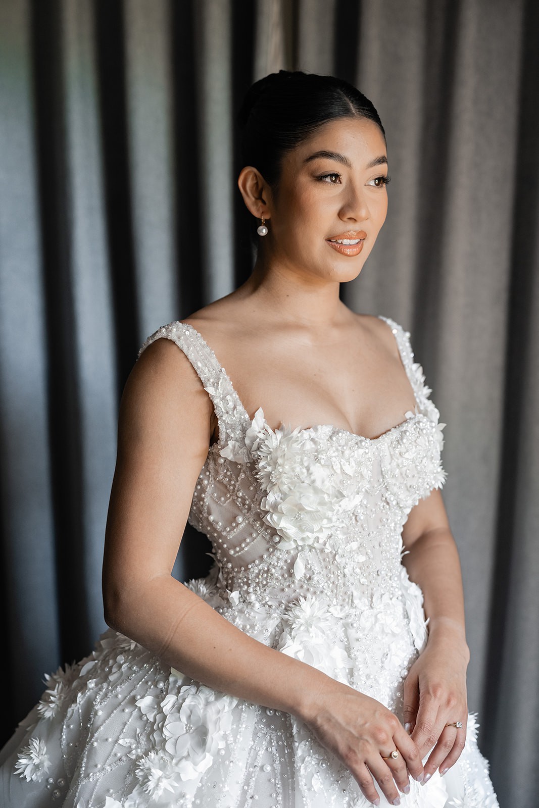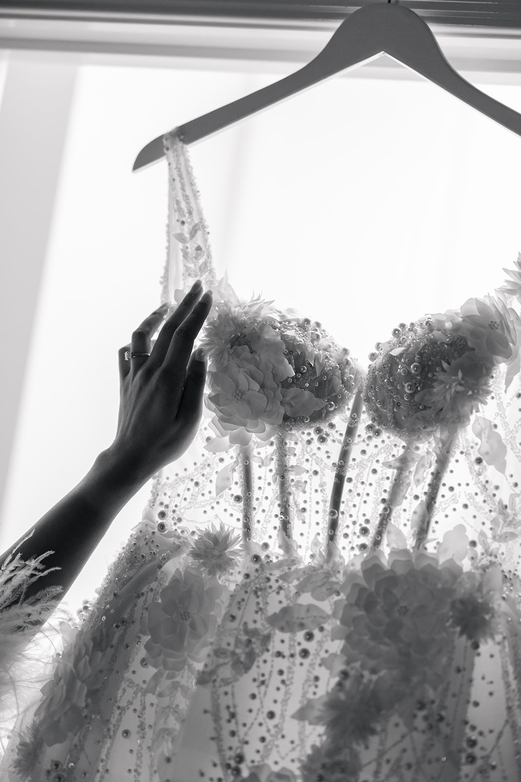 This gown was custom-made with several high-end upgrades to enhance its beauty and wearability: