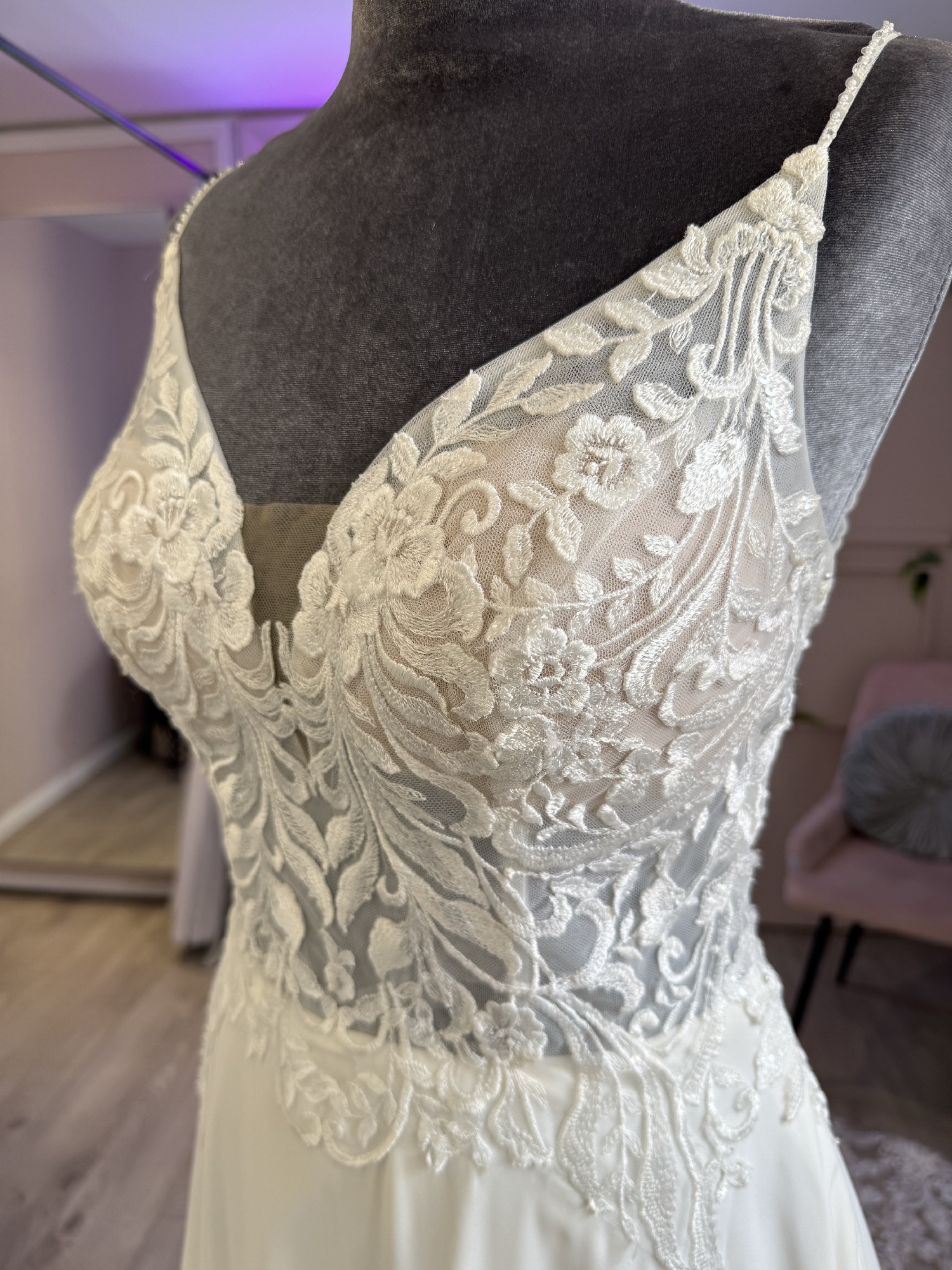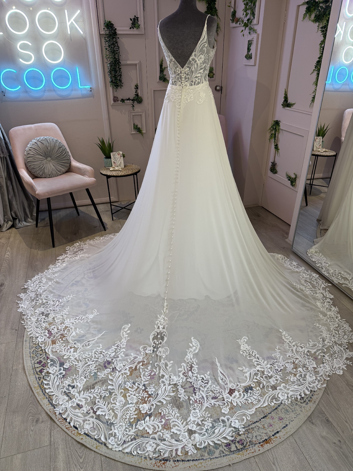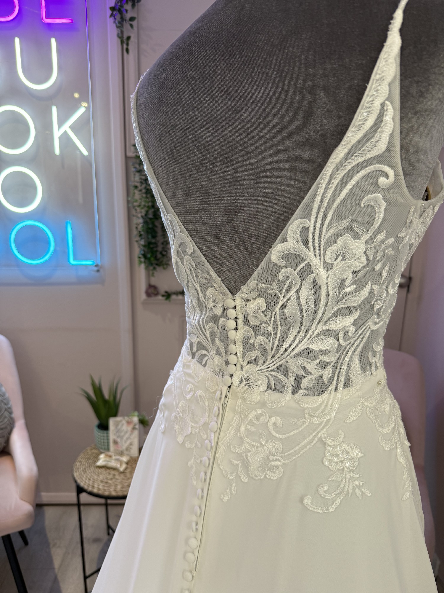 Please note that these are photos of a sample rather than the gown selling as it does have some signs of wear and tear, i.e. missing buttons and beadwork - the dress selling is brand new with tags never worn or altered.