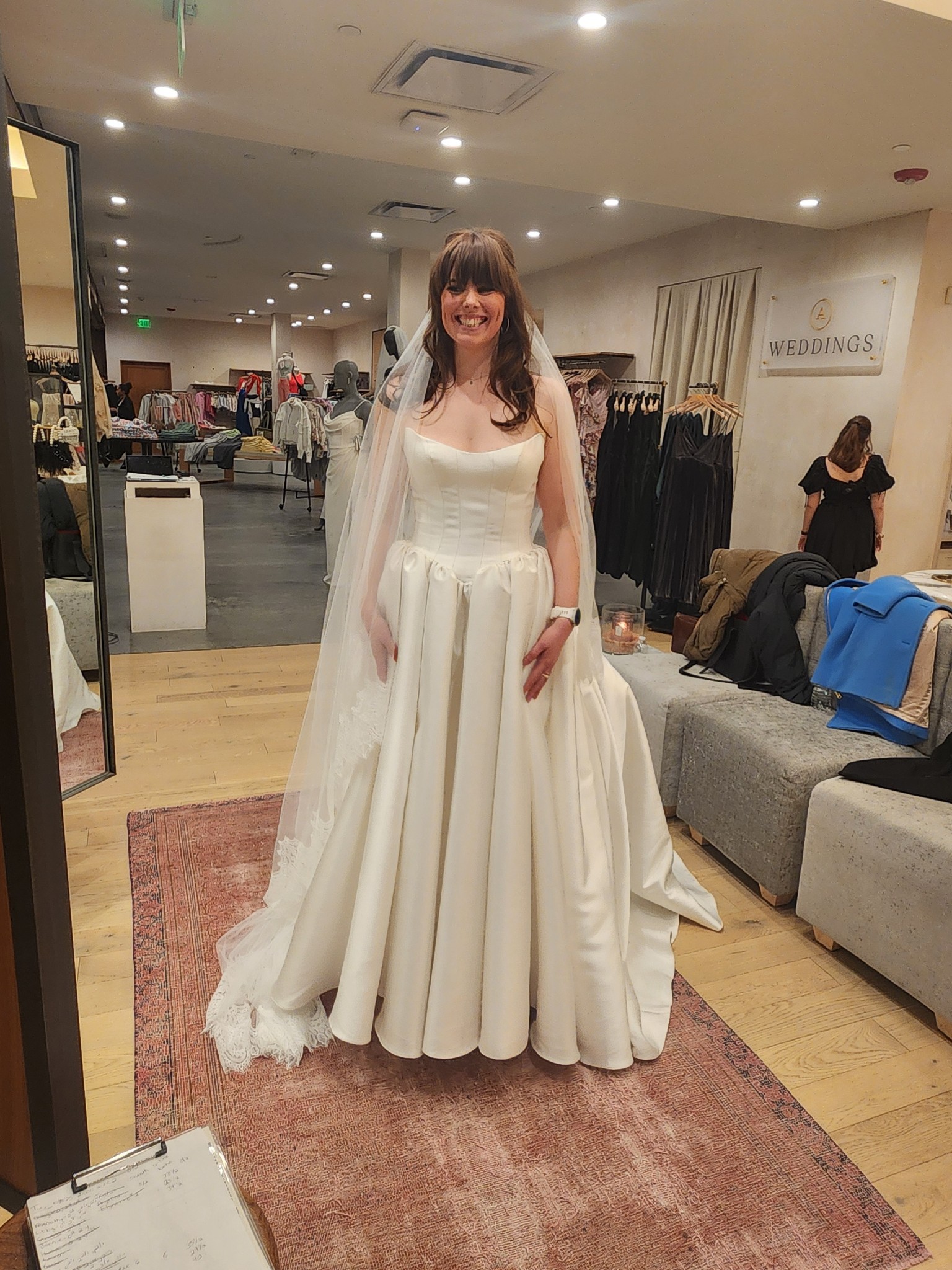 - Originally bought as size 10, was altered to a size 8 — only alterations were bringing in the bodice