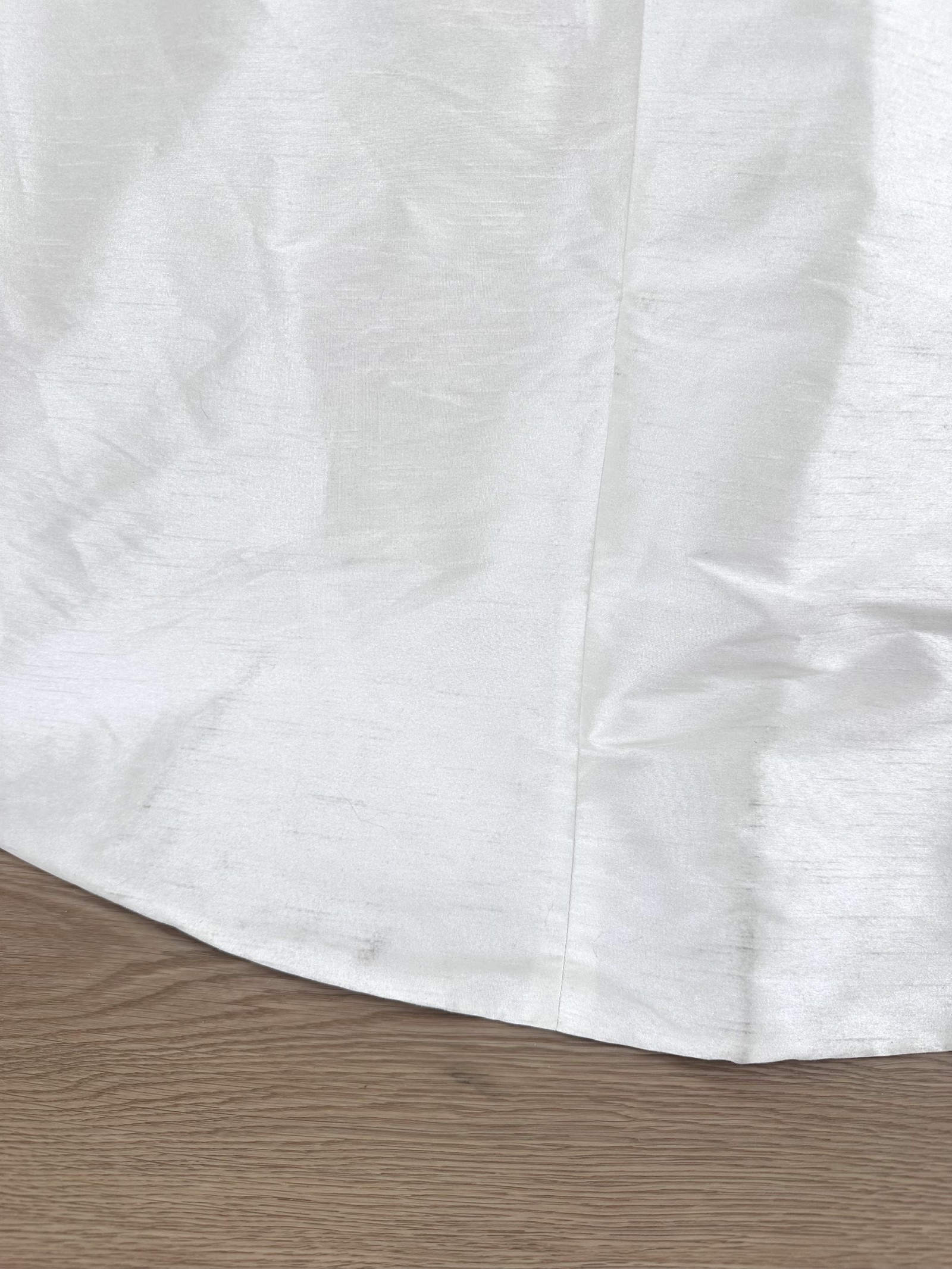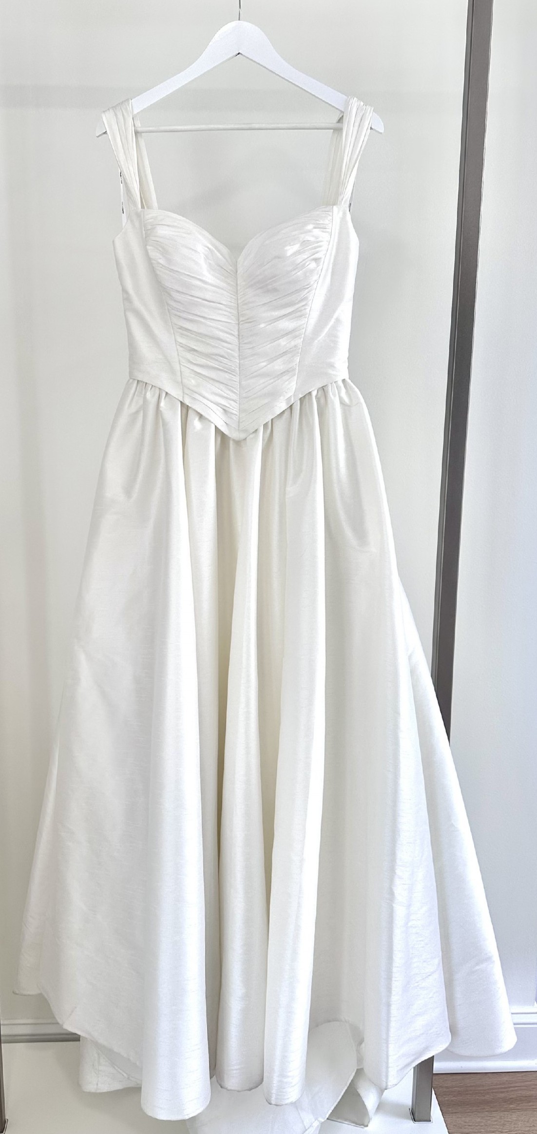 Gently used sample gown for sale. Gown is in fairly good condition - only a few marks on the train. Fabric would need to be cleaned but otherwise great condition!