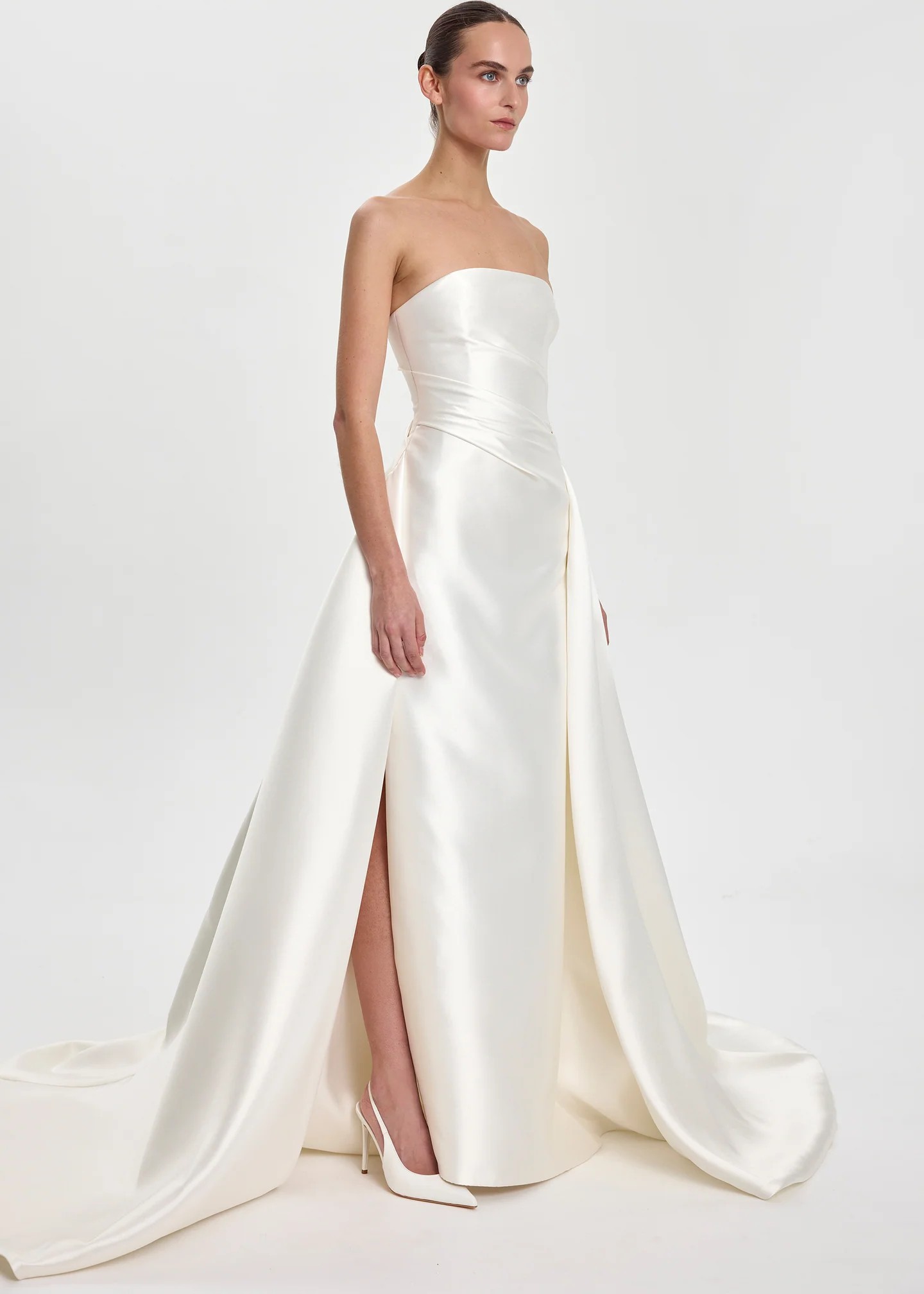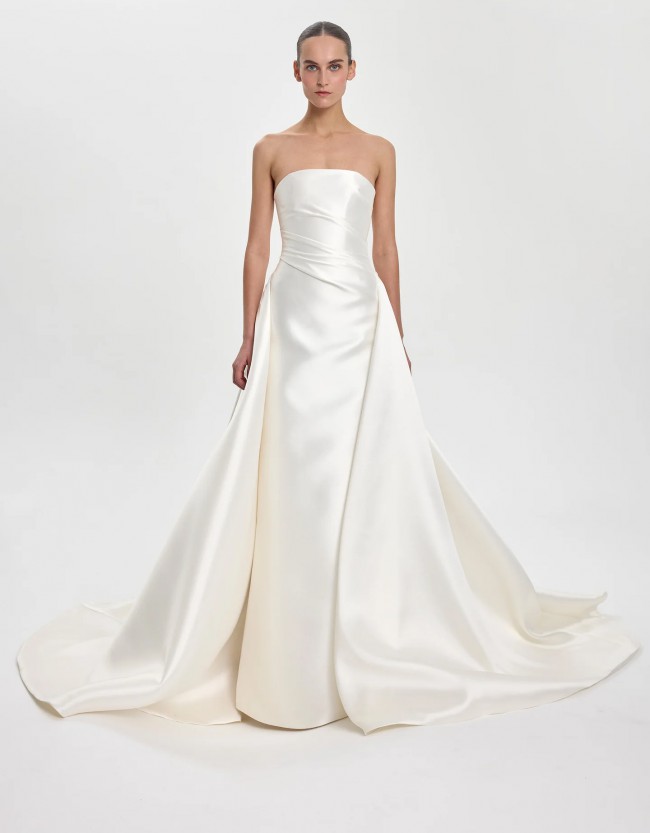 Never been worn or used! I just ordered it and changed my mind based on the venue. This dress is stunning. Classy, timeless, beautiful silhouette and layers. The color is a beautiful ivory tone and wasn’t heavy at all.