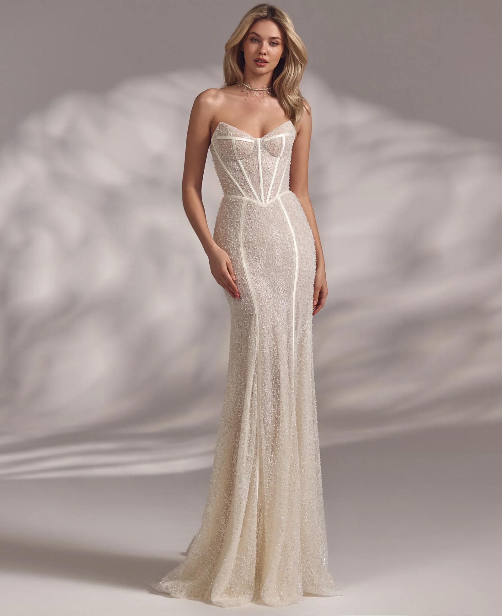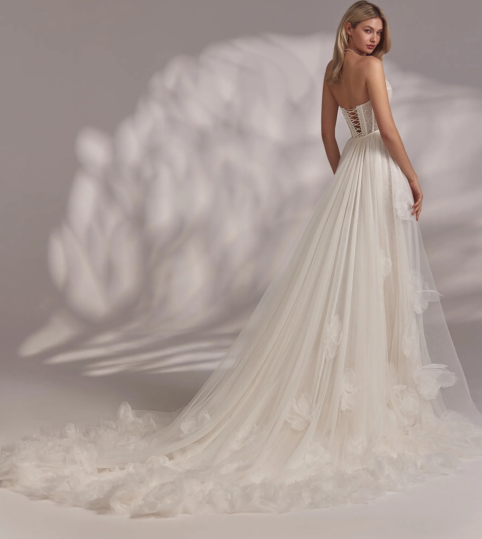 Eva Lendel Porsha dress in all Ivory with detachable plain overskirt without flowers. Very good condition.