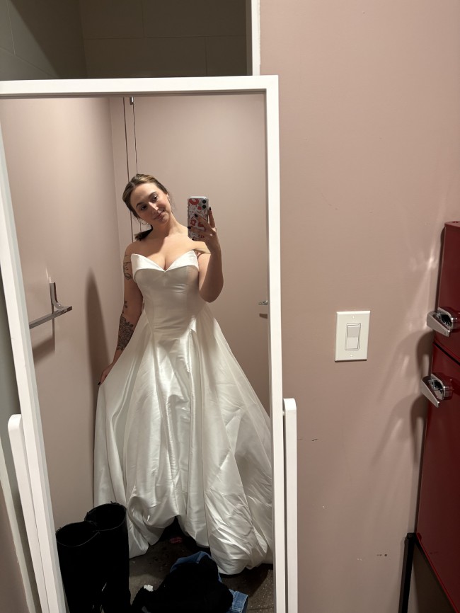 This is a dress that was used one time at a photoshoot for my company and never for an actual wedding or event! It’s brand new and gorgeous. It comes with small straps that can be added on and the original Anthropologie wedding gown bag (as well as a photo from the shoot!) I would say it fits between a 6-8 - because this was for a professional photoshoot, (unrelated to Anthropologie, although that is where this dress is from) the tag was removed. I am a size 8/10 and it was just a little too small for me. Note: there are buttons but this is a zipper closure, which isn’t totally clear from the original listing on their website. The bottom is a bubble-type hem and has a bit of a train.