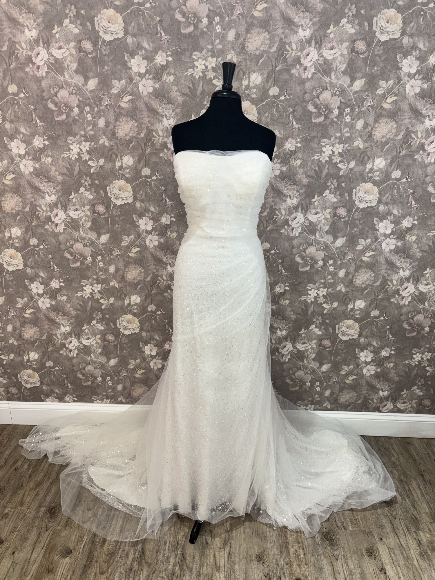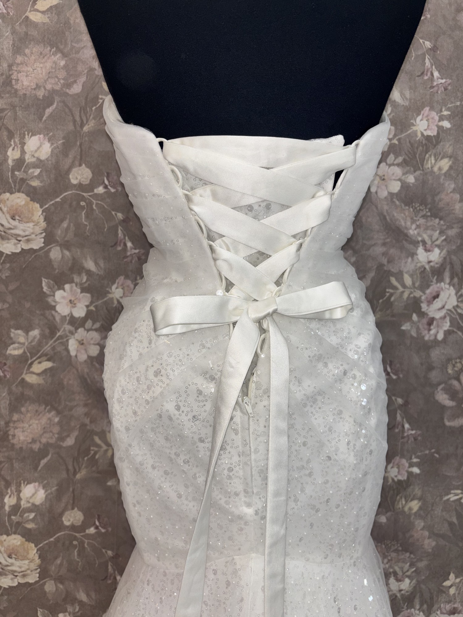 Our gowns have not been worn for a wedding, though they may have been tried on during appointments. While we maintain high standards for our samples, small imperfections—like loose buttons, missing beads, or zipper issues—can happen. These easy-to-fix details with the help of a seamstress mean amazing discounts! Interested in this gown? Chat or email us anytime for more info or extra photos.