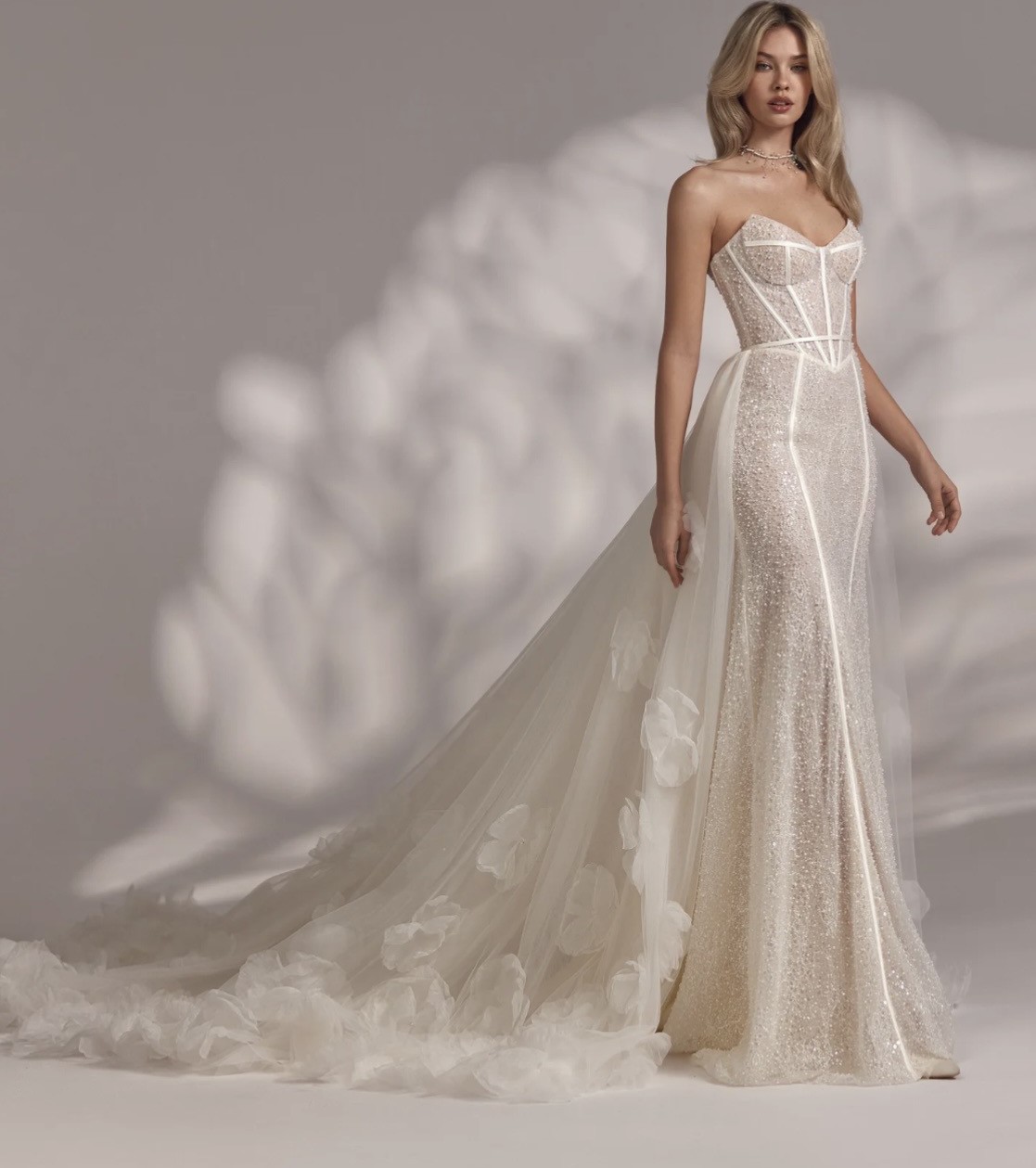 Eva Lendel Porscha Wedding Dress, Size 44 / UK 16, Colour Ivory, RRP £2,306 (Ex-Display) The dress is in immaculate condition! Comes with over skirt.
