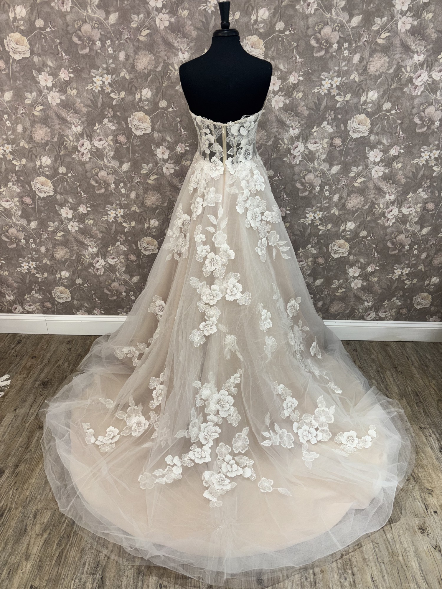 Our gowns have not been worn for a wedding, though they may have been tried on during appointments. While we maintain high standards for our samples, small imperfections—like loose buttons, missing beads, or zipper issues—can happen. These easy-to-fix details with the help of a seamstress mean amazing discounts! Interested in this gown? Chat or email us anytime for more info or extra photos.