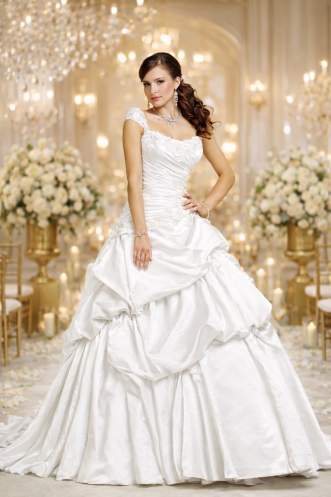 Couture Satin Ballgown with Lace Cap Sleeves by Maggie Sottero